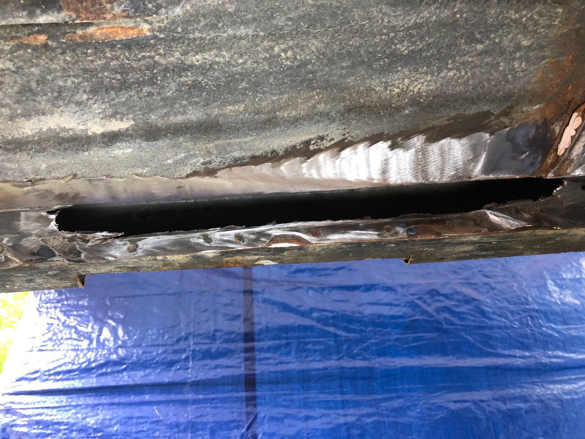 I then took it down to my go-to shop for the good-ole college try at getting a sticker. The owner (who I'm friendly with) asked if it was good to go and I told him honestly there's some rust holes that I'm unsure of. He came outside, took a look at it, and said "Ehhhhhhh I don't know man. You better patch that up a bit." So I went home and started cutting out all the rust I could find.