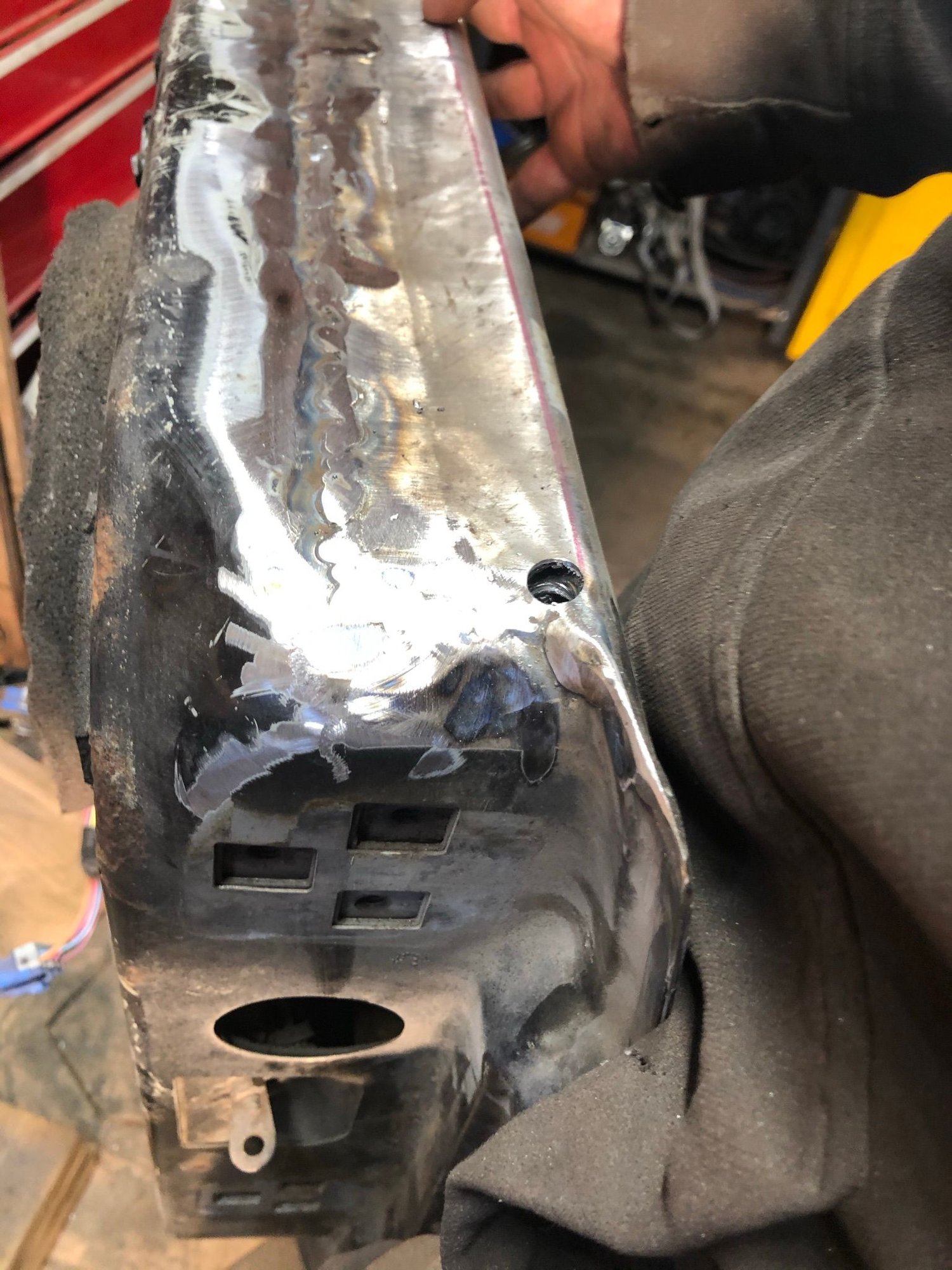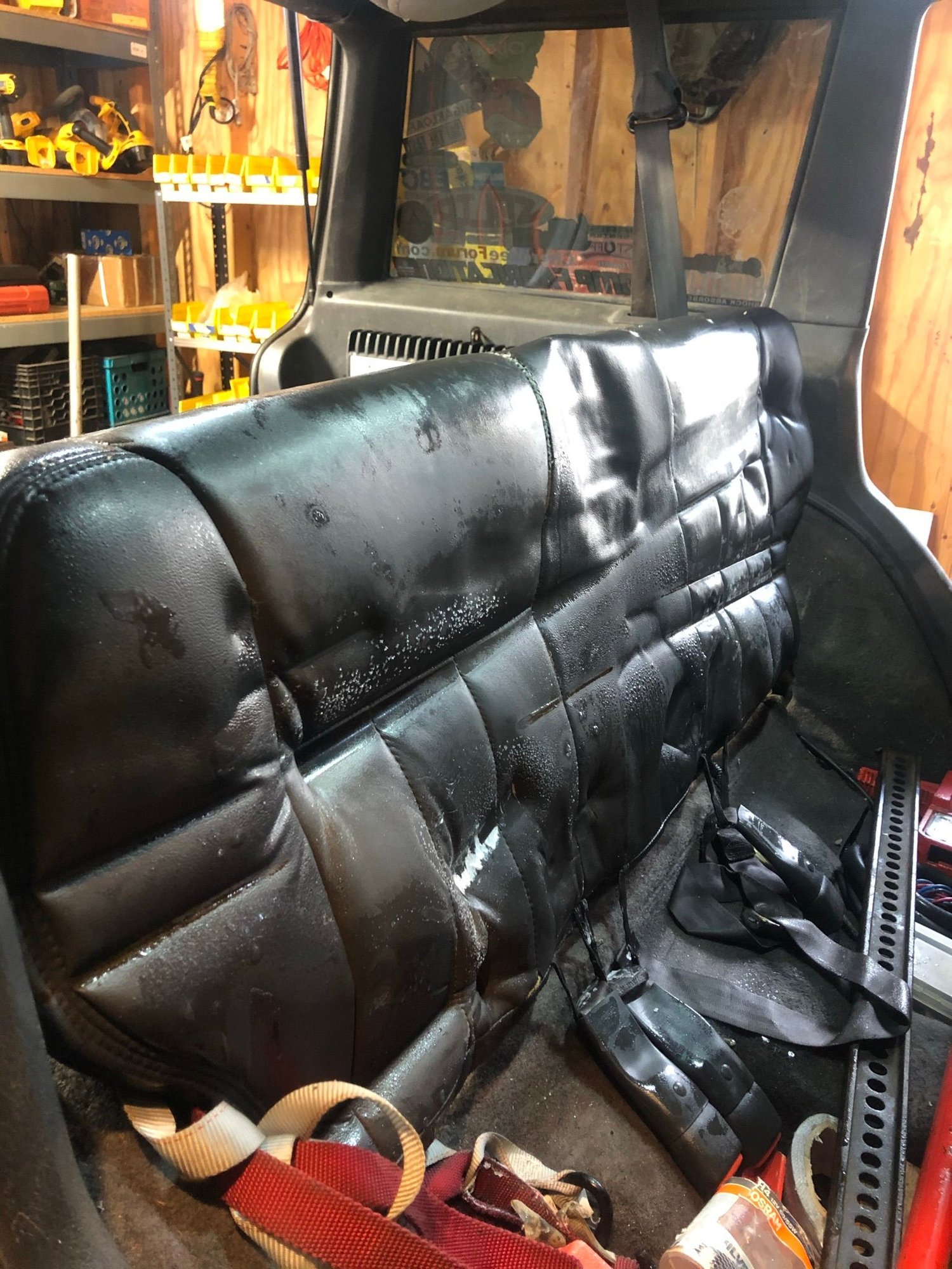 I was able to rebuild my seat mounts on both sides, and rebuilt the rear wheel wells/rear seat storage area. There are still some small holes in the rear hatch area over the gas tank that I did not touch. I decided to leave those for another time as I already was sick of looking like tihs: