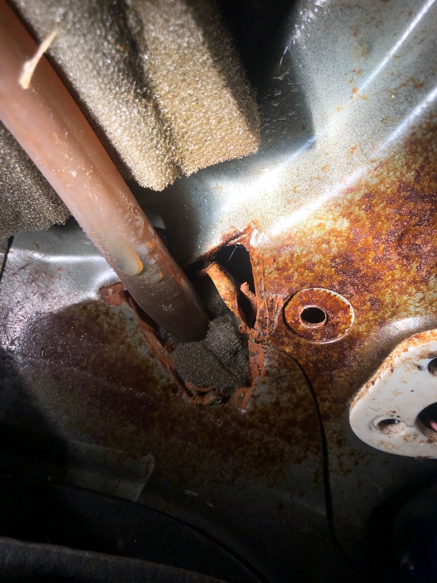 Last December my Jeep was parked in my driveway for a few weeks. We had some snow and some freeze/thaw cycles. I had noticed that there was a significant amount of condensation on the inside of the windows of the jeep, which had been freezing/thawing with the weather. When I finally had the time to get the Jeep in the garage to investigate, I found a pretty nasty sight.
