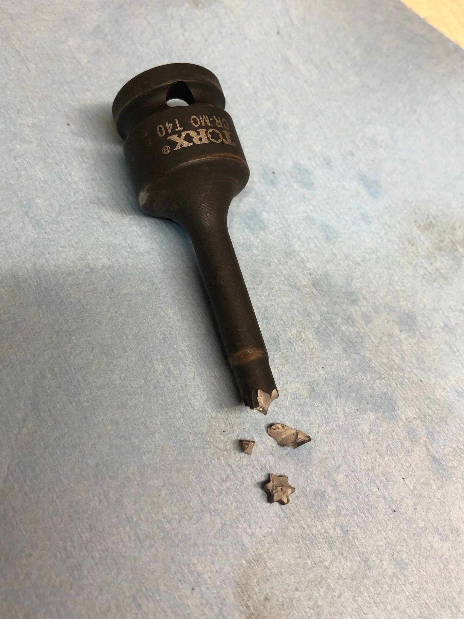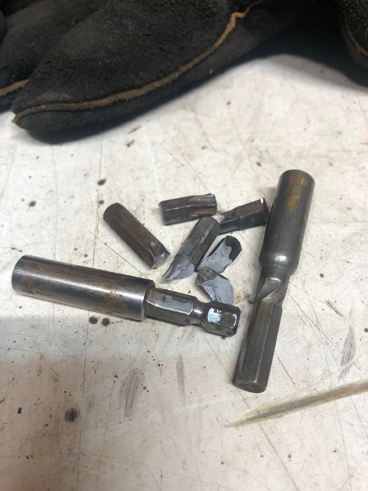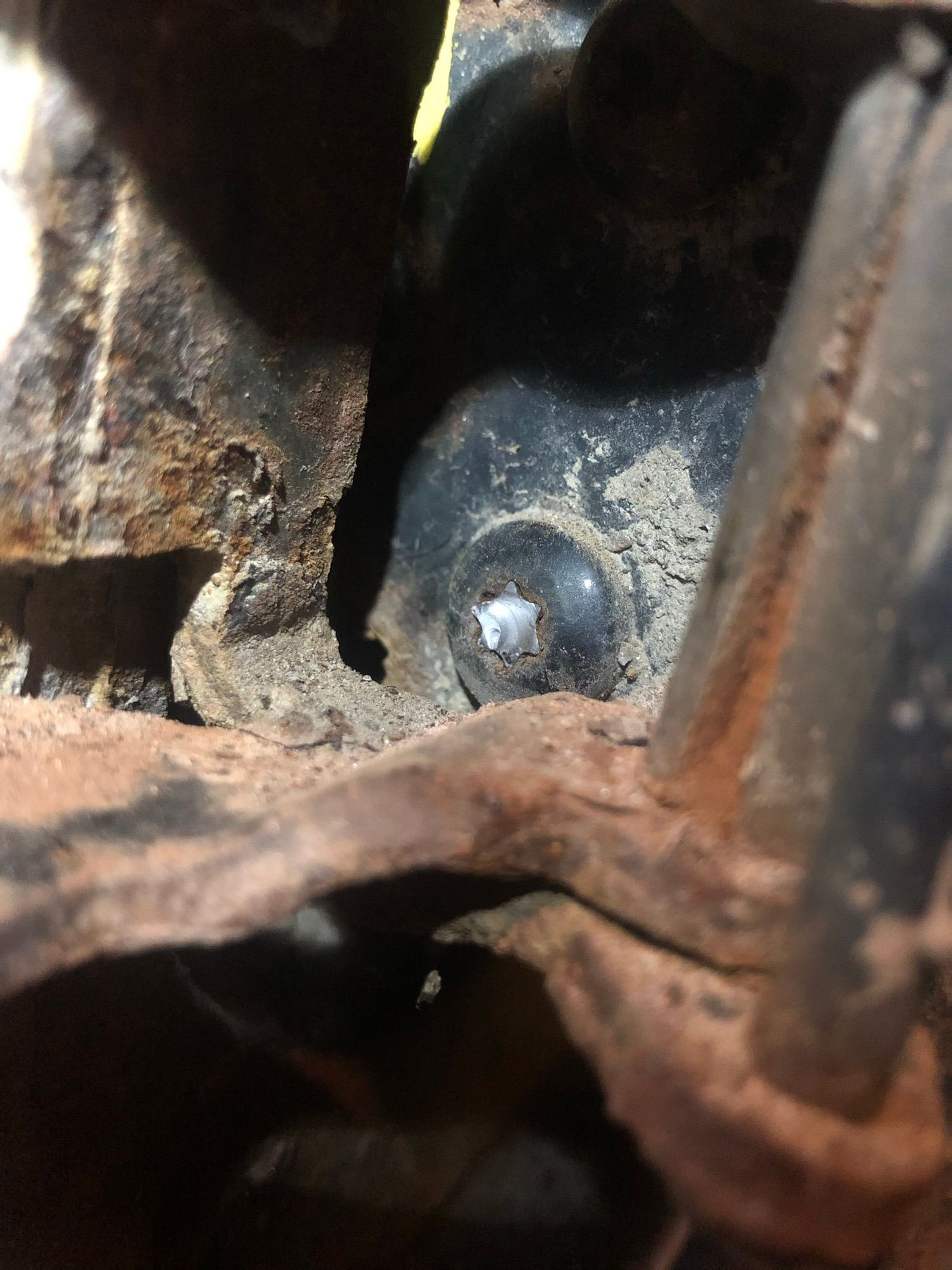 First step was to remove the doors. This didn't go well at all, because why would it? T-40 drivers are not beefy enough to deal with these door bolts that have been rusting into place for over 20 years. I managed to remove the first door with just a small pile of broken driver bits as a result.