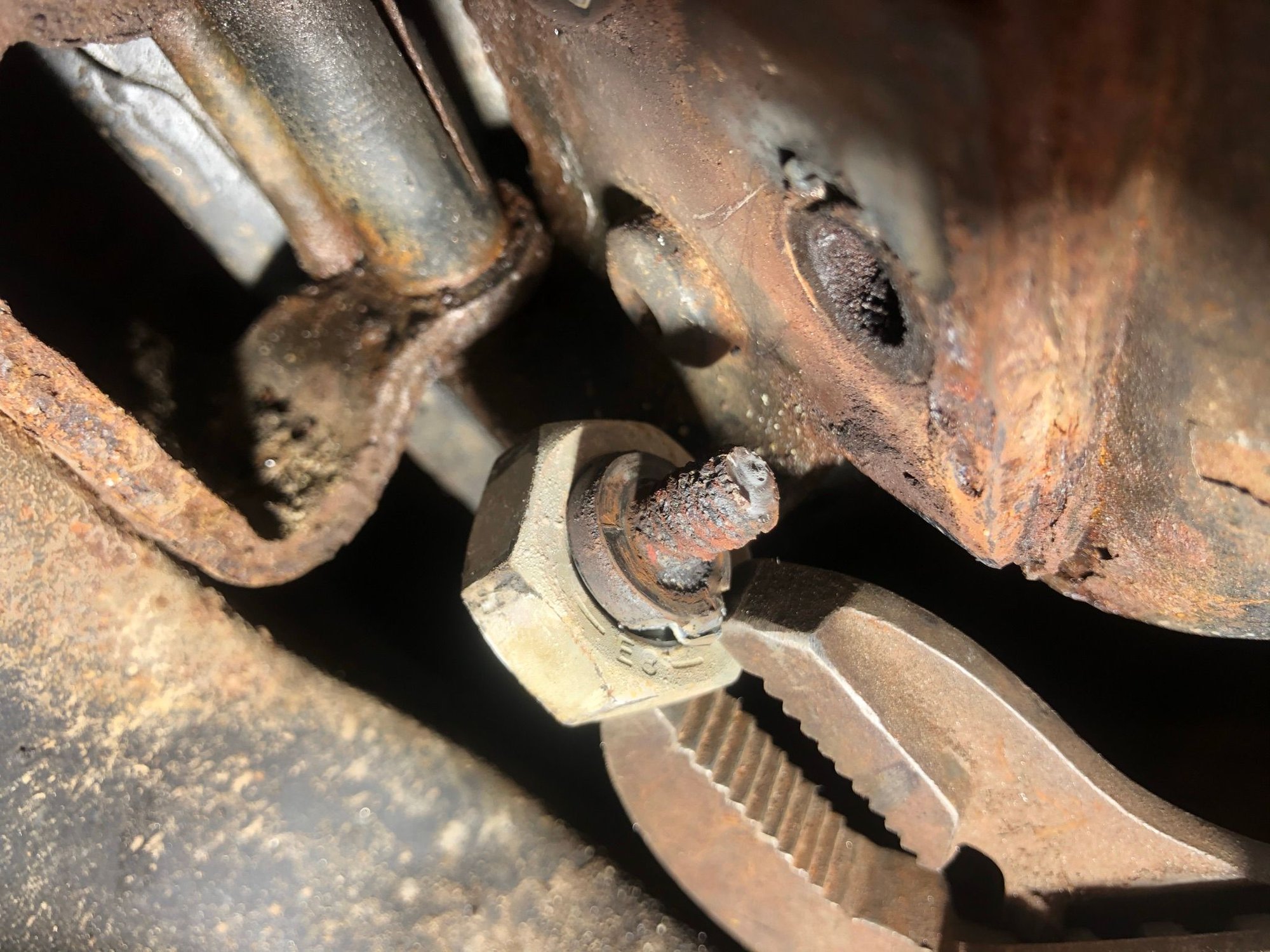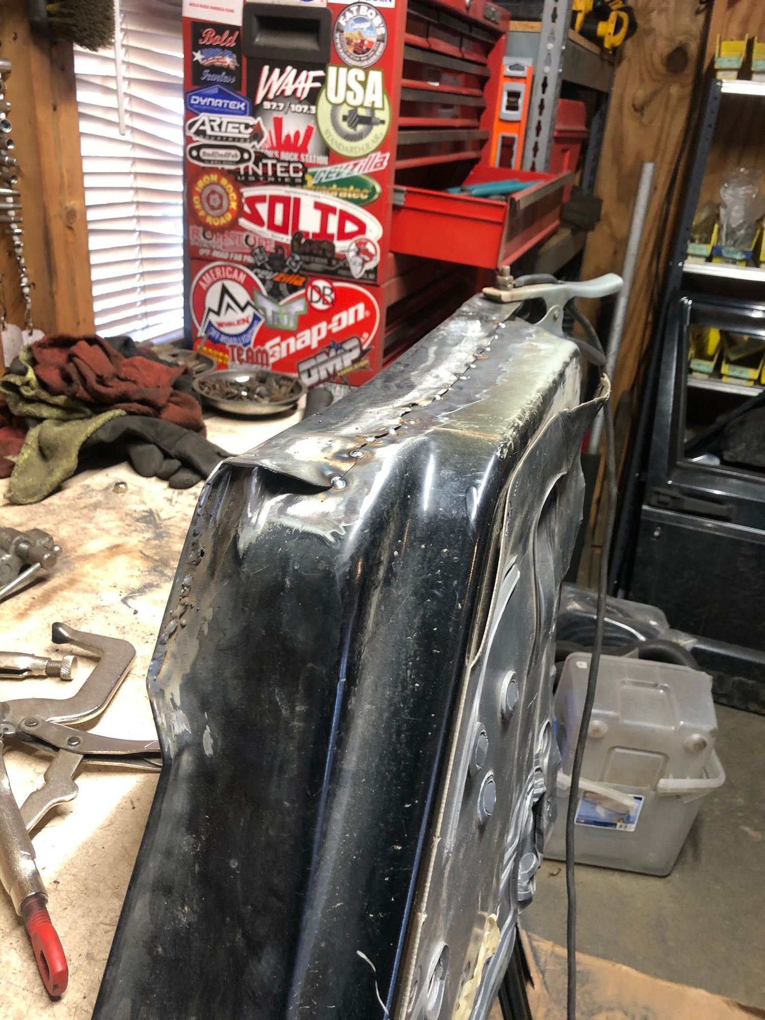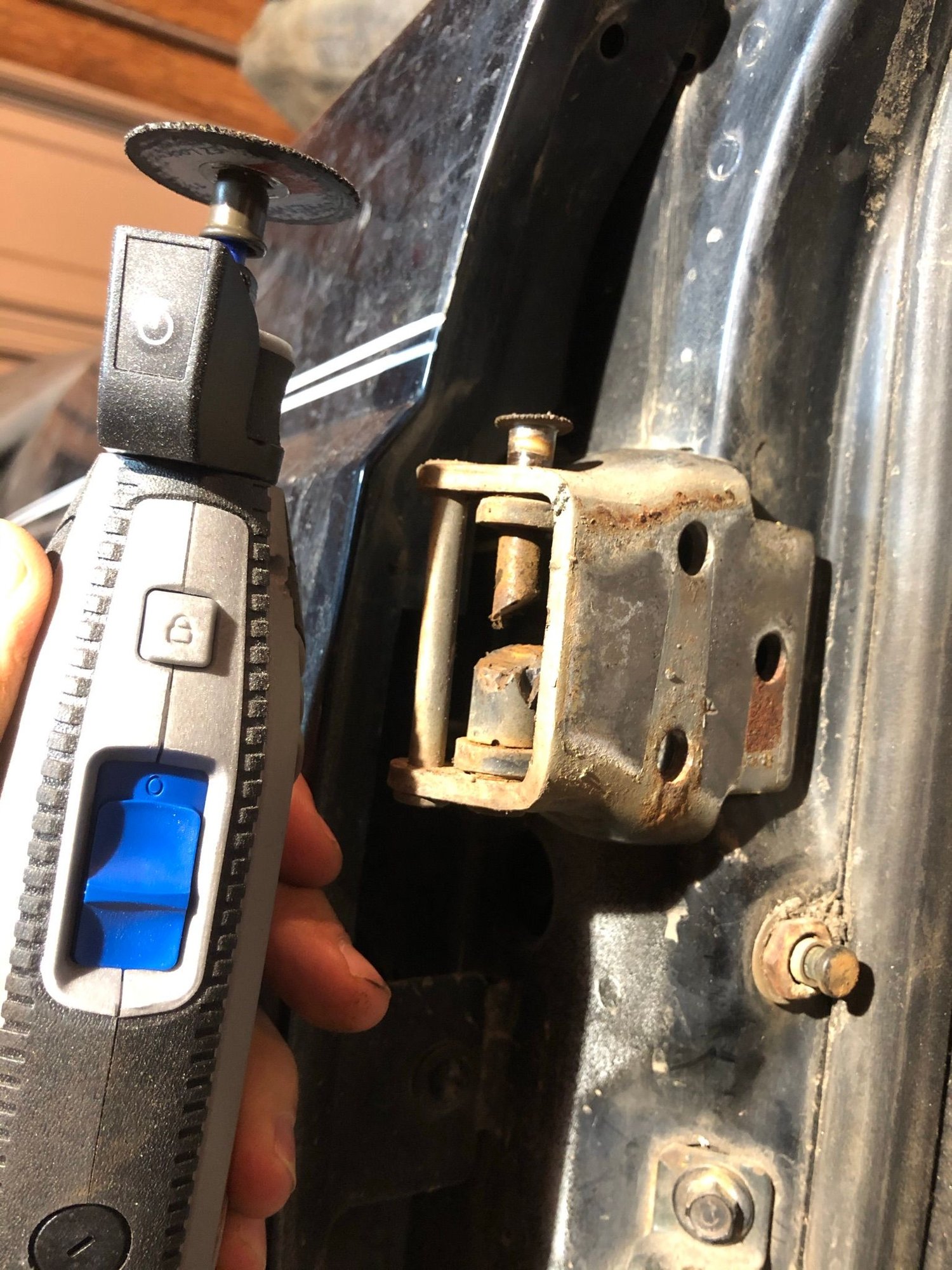 First I had to dick around with the doors again. This time I learned that using the welder right from get get-go is the easier solution. I don't know if these bolts have thread locker from the factory, but heat is definitely required to remove them. The issue is you really cannot get a torch on them without toasting the plastic sleeve that goes over the door hinge pin.