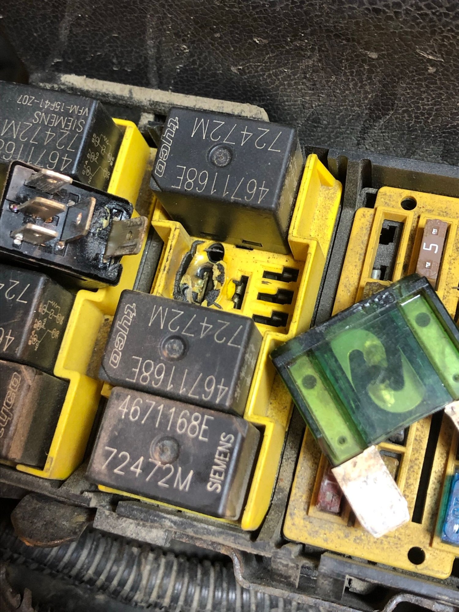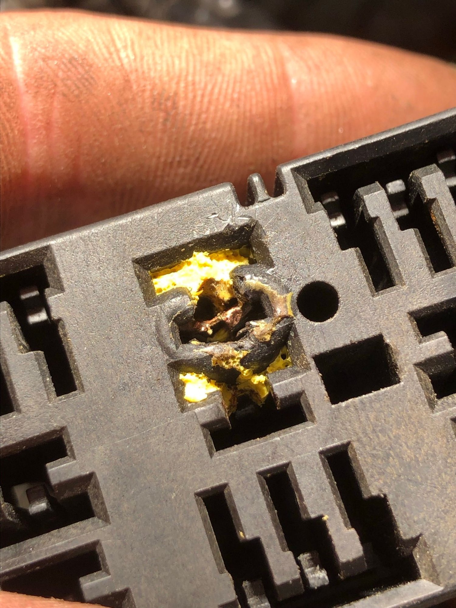 While wheeling, I had run my air conditioning pretty much all day. I had noticed a burning plastic smell that would come and go, and spent several days trying to identify the source. Eventually, I found my electric fan override relay had melted inside my PDC