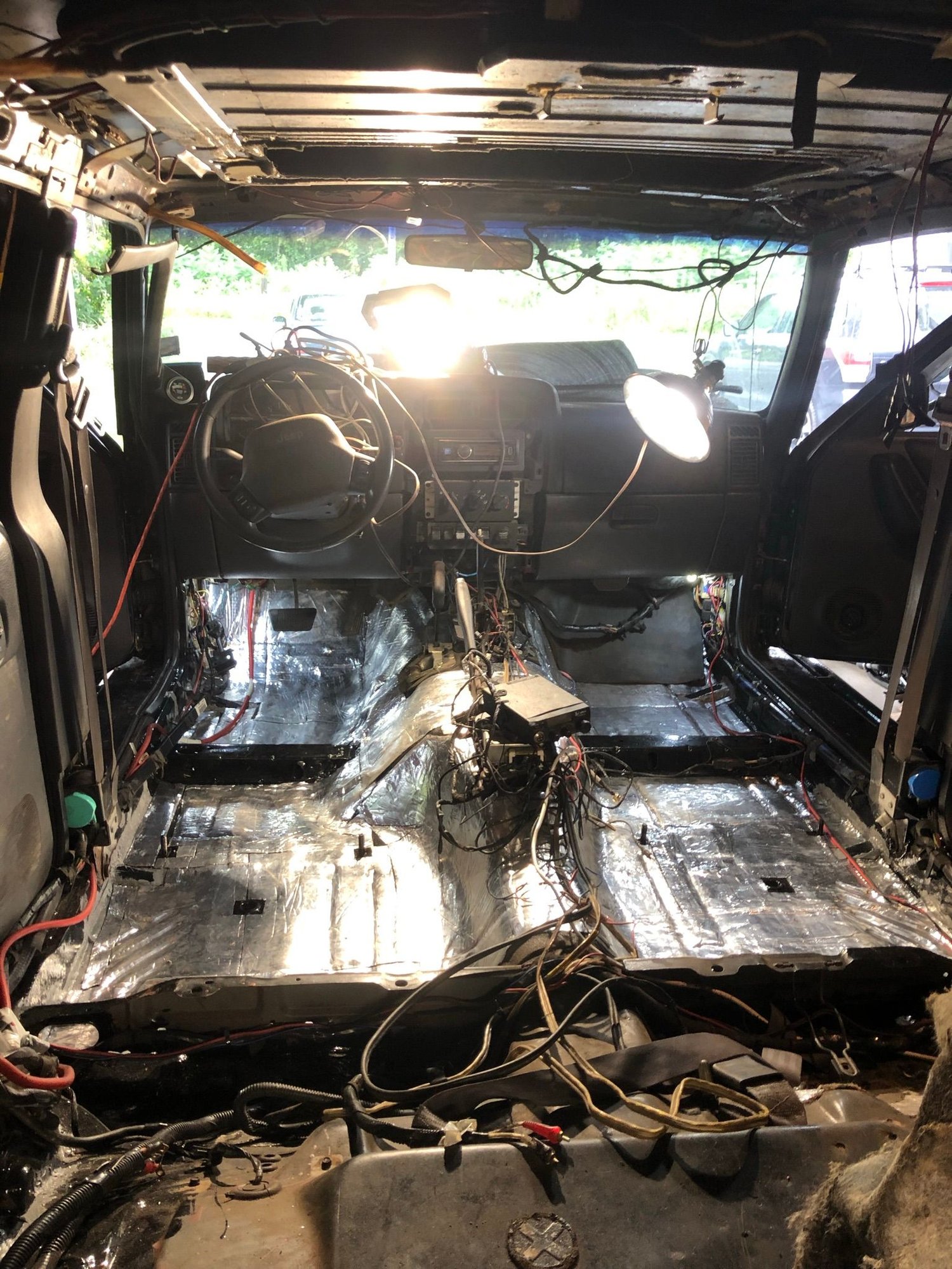 Before I put the carpet back in, I sound deadened from the passenger foot wells back to the rear seat storage area.