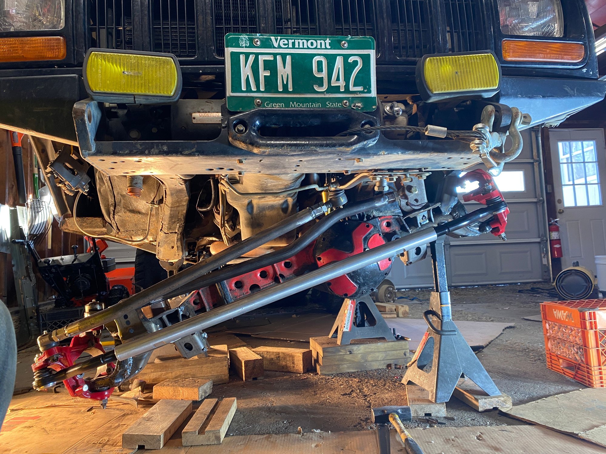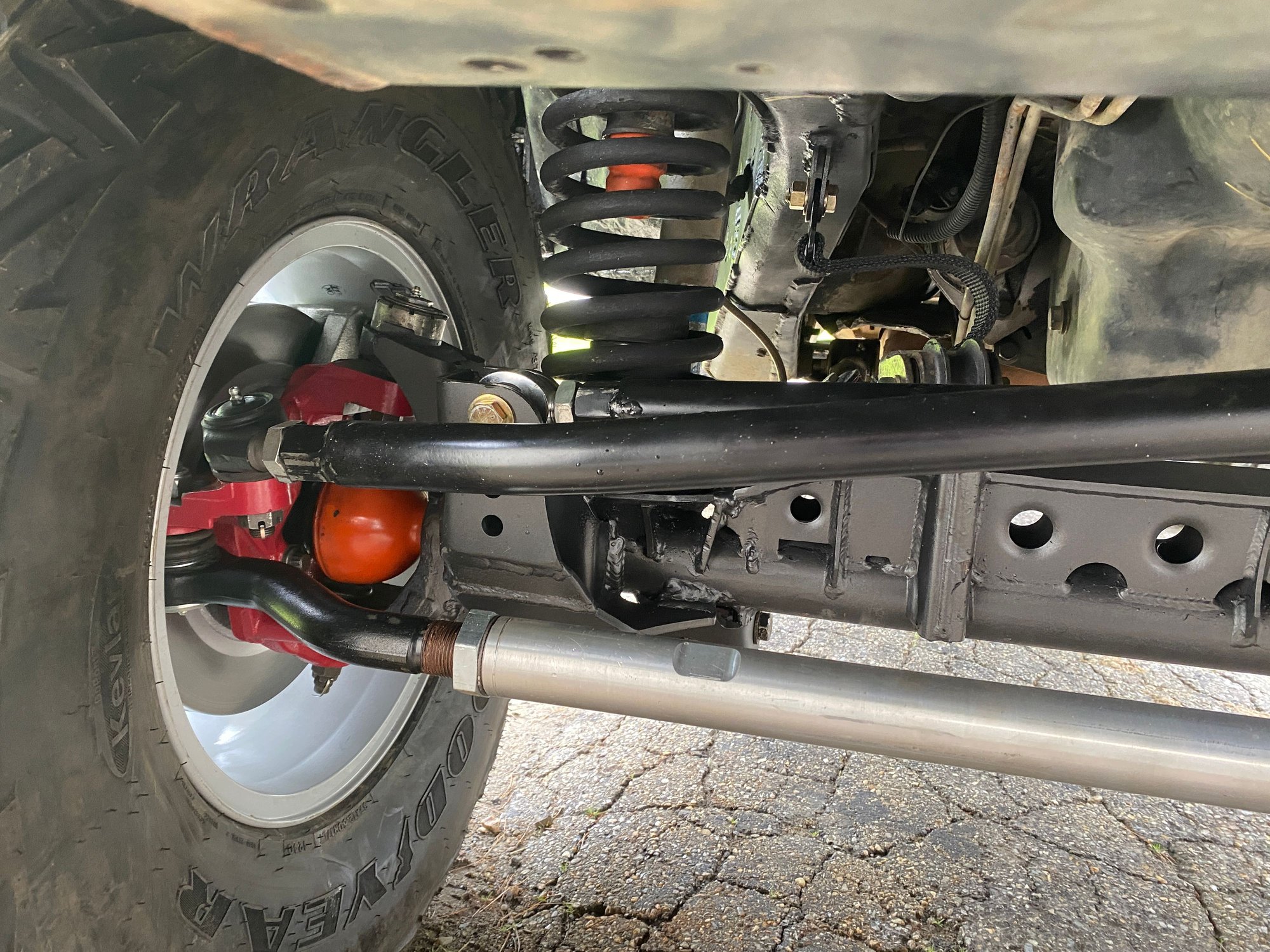 You're making good progress. I am in about the same place with mine. I put the Ironman front four link on mine, bought just the cross member and built my own links. Cut the shock mounts off to move the lowers down and the uppers up. All of the cutting and fitting is complete with exception of the upper shock mounts. I am going to order the shocks and wait until they come in to finalize the upper shock mounts. I have everything blown back apart for priming and paint. I leave for a work trip Friday, I hope to finish the jeep up in early May when I get back.