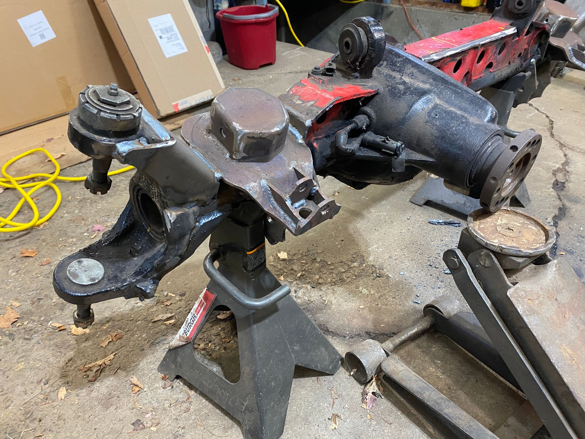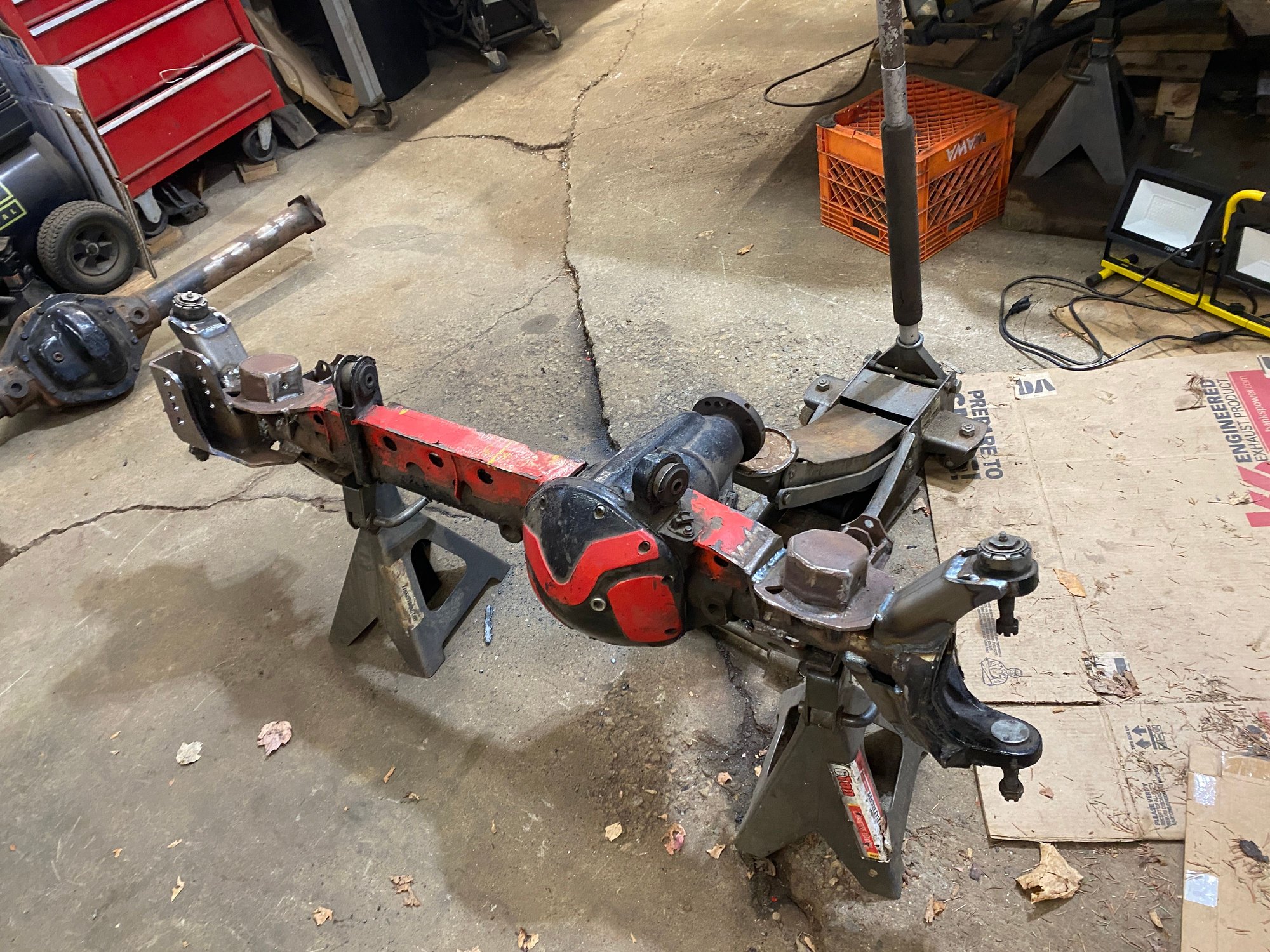 Been poking away at this as I've found time and motivation. I first swapped the pinion flange out for a standard yoke to help with driveshaft problems.