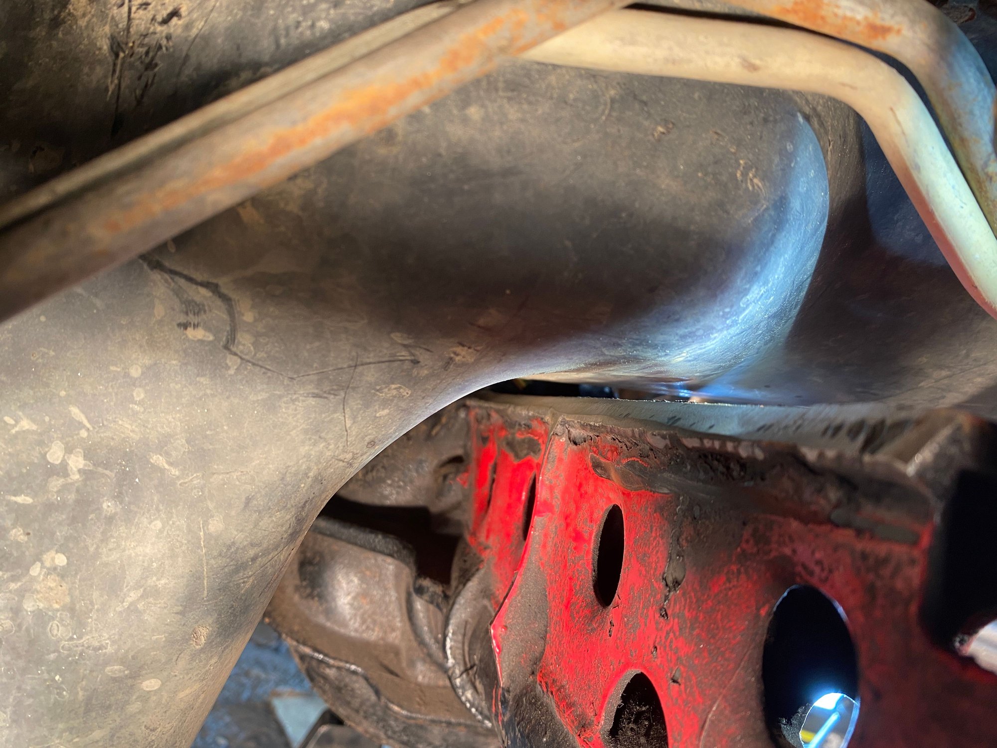 and, probably most concerning, my control arm plows right into my fuel line just before the fuel line turns up to go into the engine bay. Honestly, this may have already been happening for years, but I will need to move the fuel like away from the arm a bit, because that's scary