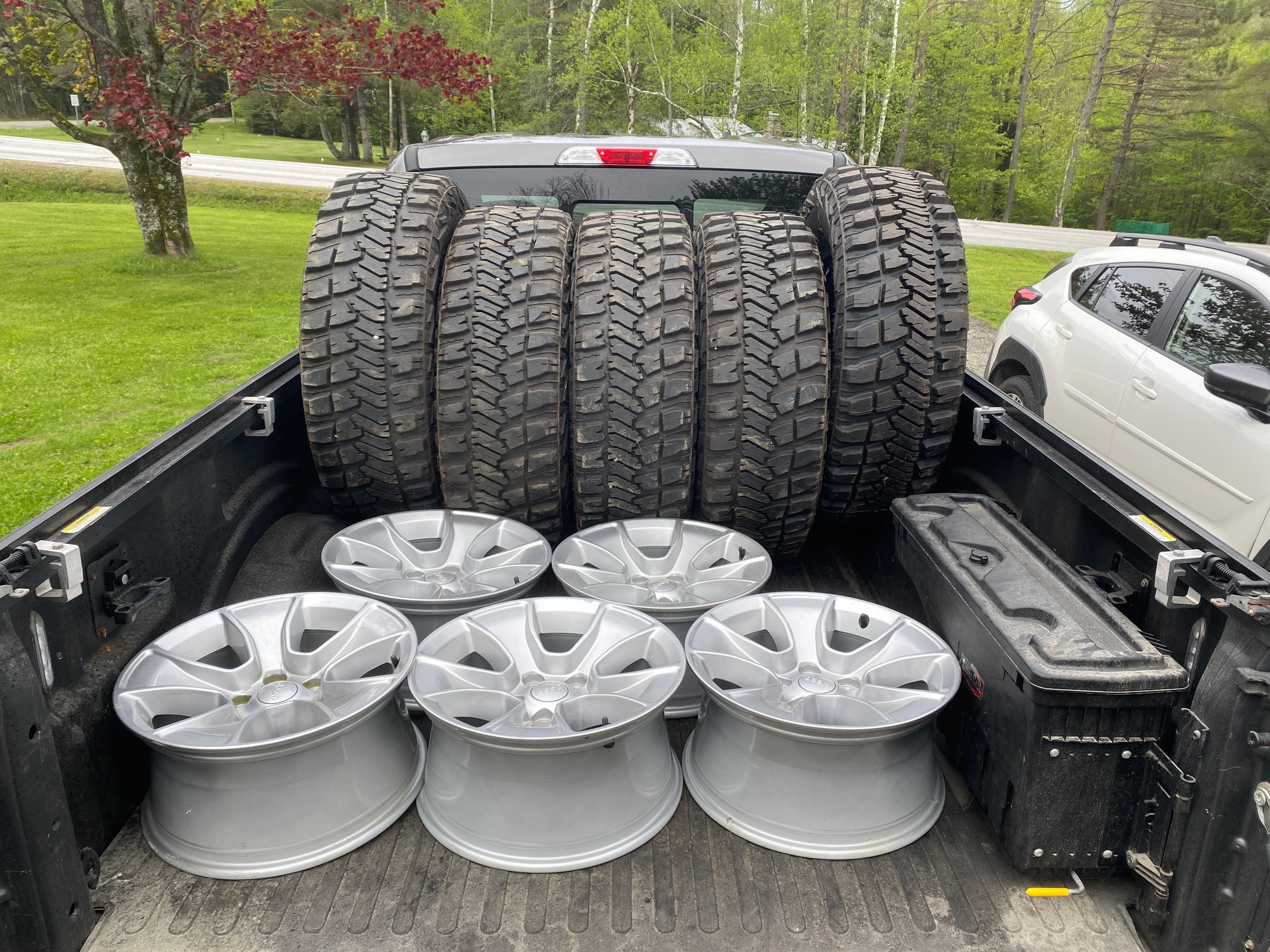 I was so dead set on sticking with 35's, and I really wanted to find some skinny 35's too. I was convinced I was going to buy 35x11.5r17 Nitto Trail Grapplers because they're one of a few narrow options that come in load range C. However, these came up on marketplace for $800 for 5 and they looked too good to not use. They are almost 10 years old, which is unfortunate, but they look good. The 5th tire has never been driven on. I also bought these Mopar Performance wheels and had them mounted last week. These wheels should be awesome. They're 17" x 8.5" with 5.25" of back spacing. I haven't put them on the Jeep yet since having the tires installed, but my god do they look good. I'm happy to have such a high backspaced wheel. Should keep wheel bearings and power steering a bit happier. Fingers crossed they fit.