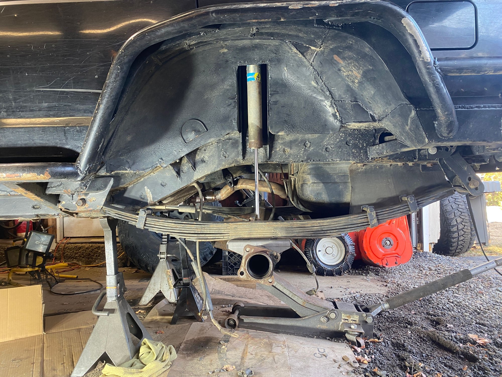 I'm keeping my same Bilstien 5100 shocks for now. They aren't blown out and new shocks are not in the budget at the moment. They're 10/11" travel and have served their purpose well enough over time. I'll have to add a few inches of bump stop in the front to stop from bottoming out the shocks, but it works out fine because I can't stuff my tires any deeper right now without doing high clearance inner fenders. At some point I'd love to hack the fenders out to build high clearance inners and taller shock hoops up into the engine bay, but this will do for now.