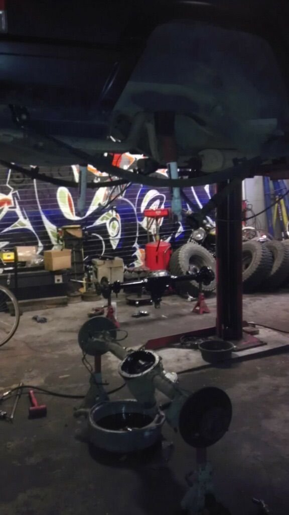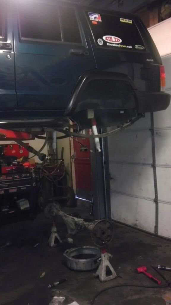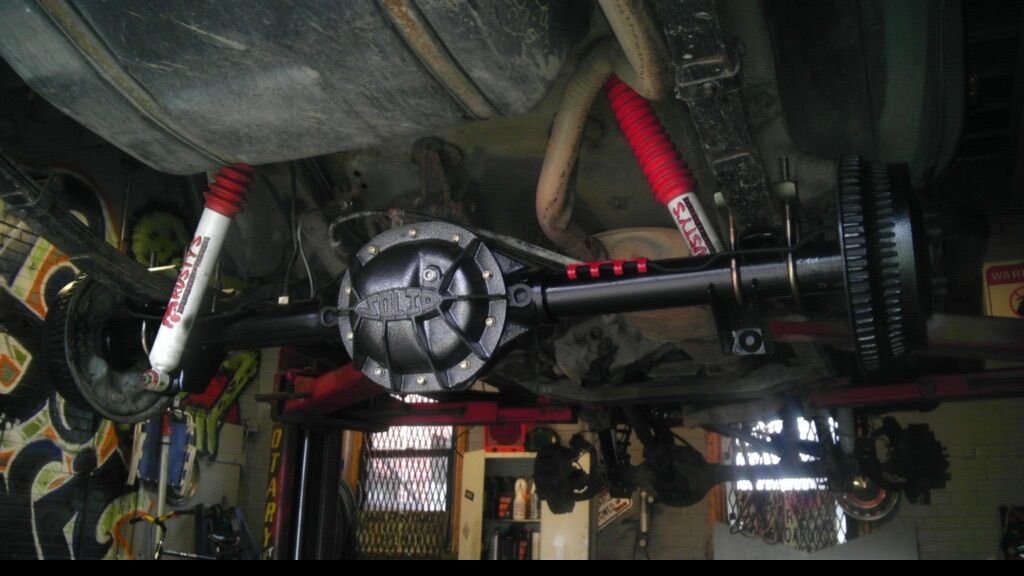 Well, in the next few days, it'll be on the road hopefully. It's getting an IRO steering gearbox spacer, IRO HD coil spring retainer clips, Aussie locker for the front, HD U bolts and plates, and the new Chrysler 8.25 rear end with the Solid diff cover and Powertrax No-Slip locker. Can't wait to take it off road and test out the new lockers, it'll be a world of difference I'm sure.