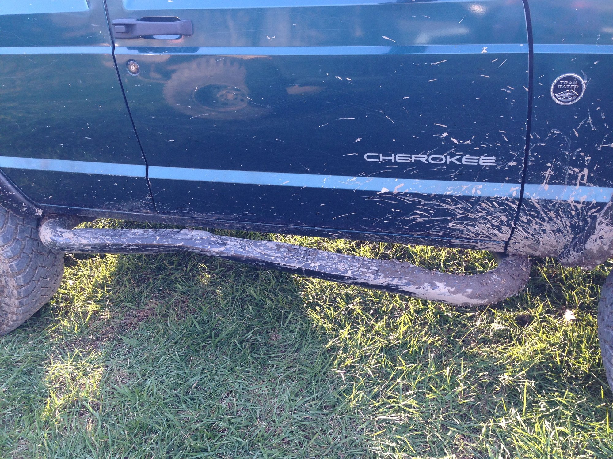 Yeah, we wound up on a lot of hard trails too. Some parts were crazier than I expected. We had to go over a 3 foot tall downed tree, and that's where I bashed up the nerf bar. Tomorrow Solicit is helping me throw on a ZJ tie rod, since my stock one is now bent, lol. Overall, I'd call the wheeling trip a success.