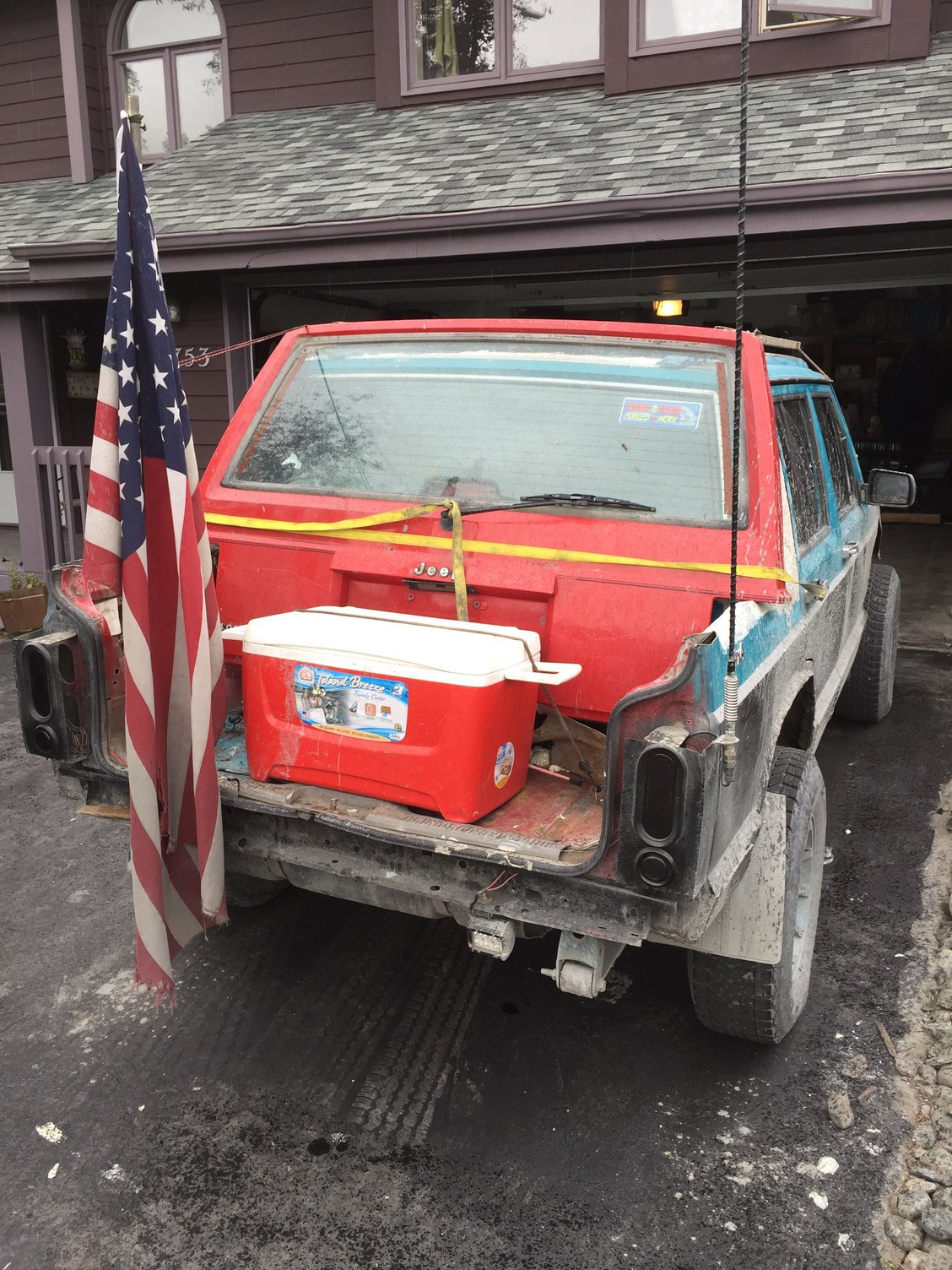 Who said ya can't haul nothing in a chopped xj??? Anyways made it home with the tailgate!! Should be going on today