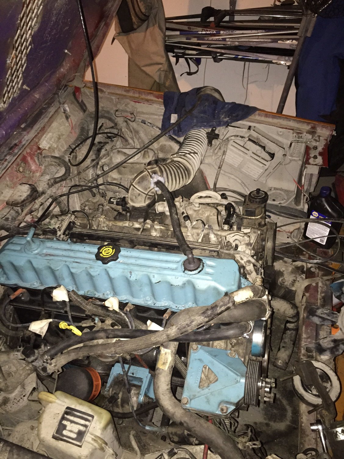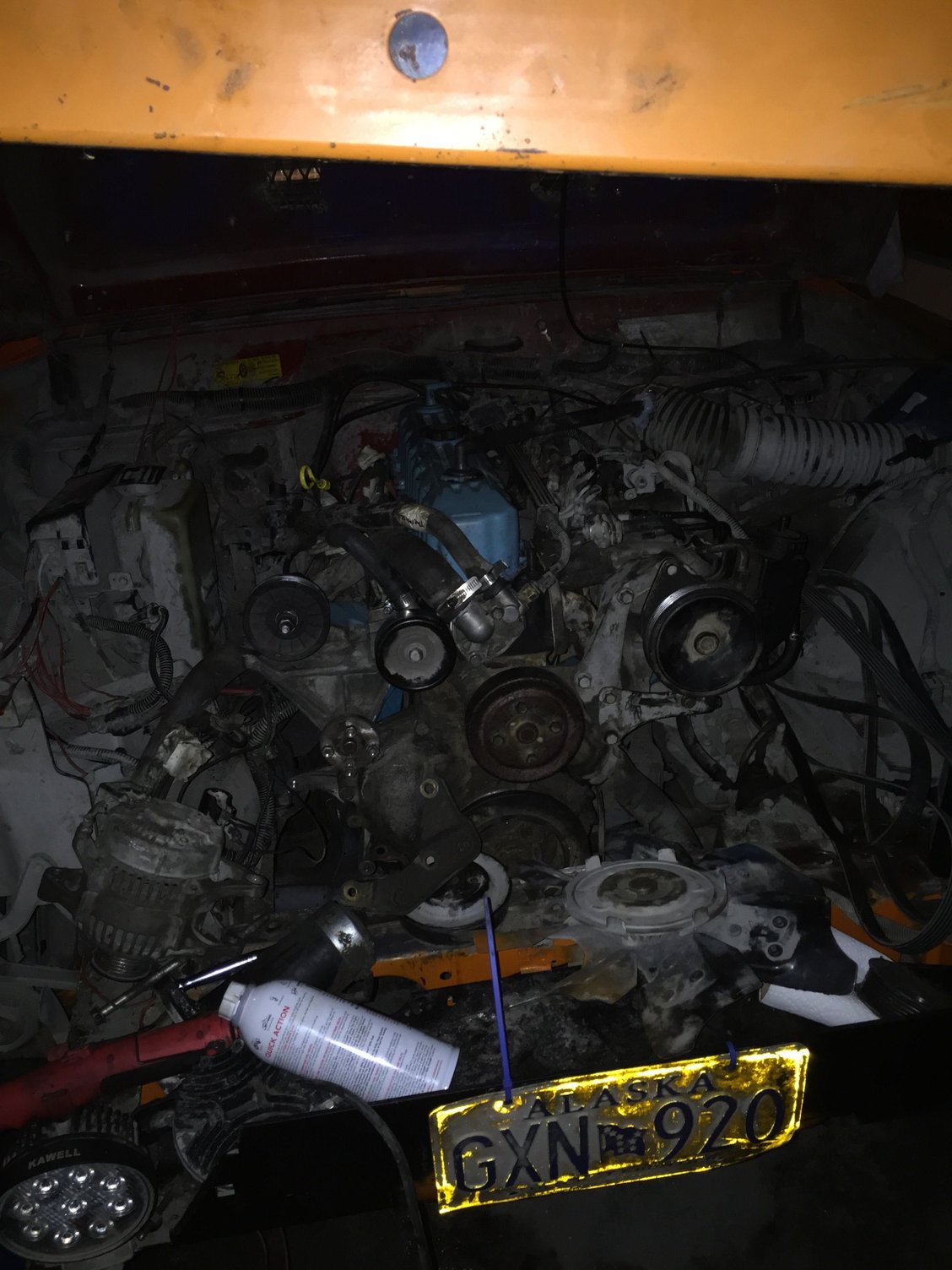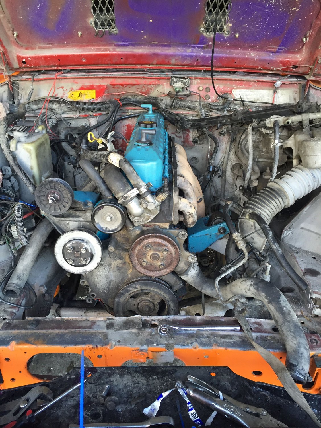 soooo looks like I'm gonna have to start searching like a mad man for the HO alternator bracket as the renix motor doesn't have the same mounting style... It's a good learning experience however, not the best job but for my first motor swap it's a good start