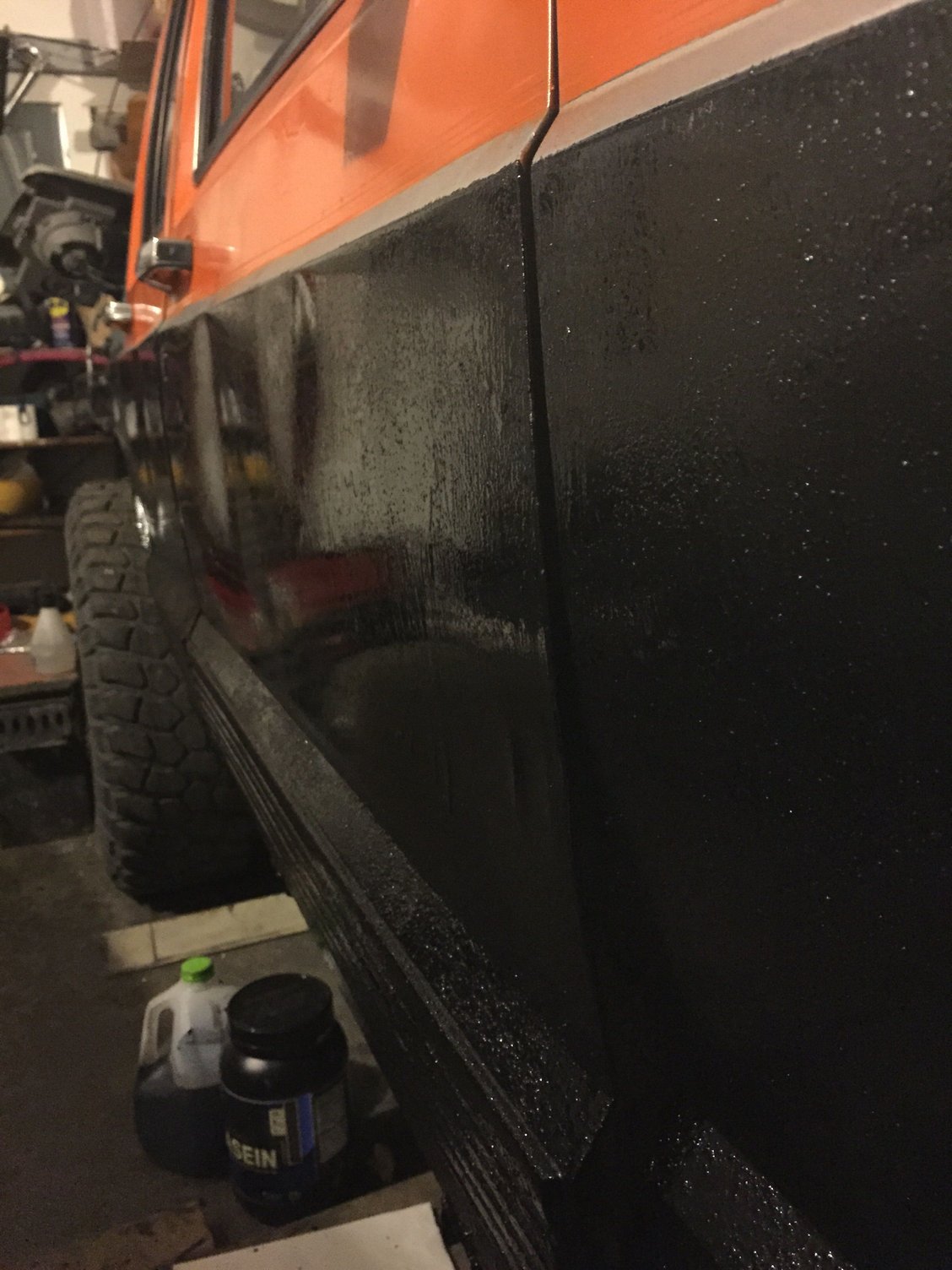 rhino lined the bottom half up to the pin stripe and then from the rear doors all the way back. It's still a work in progress but it'll definitely hold up to whatever may want to scratch my paint!