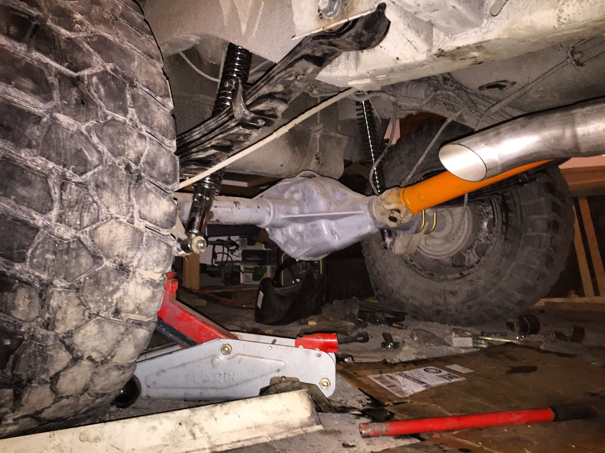 Got the rear shocks mounted up and ready to rock. IRO sent the other flex joint i need to get my lift done and the 50" should be here tomorrow. Thinking I might have an ignition issue as we were able to jump the starter off of my friends battery, but don't get anything when you turn the key. So we'll see once I get the new battery hooked up and check all my grounds to double check