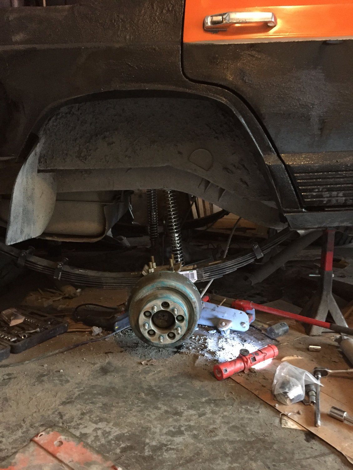 Kinda made a mess tonight lol.... Front ends on stands, crossmember assembled, and long arms done except for a missing bushing I'll grab tomorrow. Should have her all bolted back up tomorrow depending on how long it takes me to replace the water outlet housing on a buddies bronco and other things.. Ready to see how she's gonna sit, then it's back to getting the heep running again!!