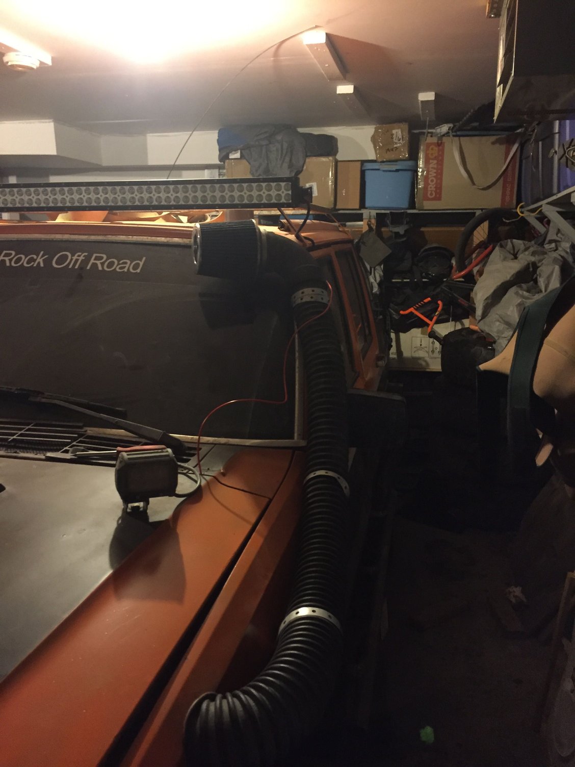 Well the snow finally hit.. Jeep still hasn't left the garage. Definitely leaning towards the ignition after looking into it further, except in the key cylinder. Might try bleeding the clutch and seeing if it has anything to do with the neutral safety switch(or the manuals equivalent) in the clutch pedal has anything to do with it as well.. Coming into crunch time as I'm tired( and I'm sure paw is too) of having to drive his truck -_- anyways added a 90 to the snorkel to help keep water from the tires off the filter