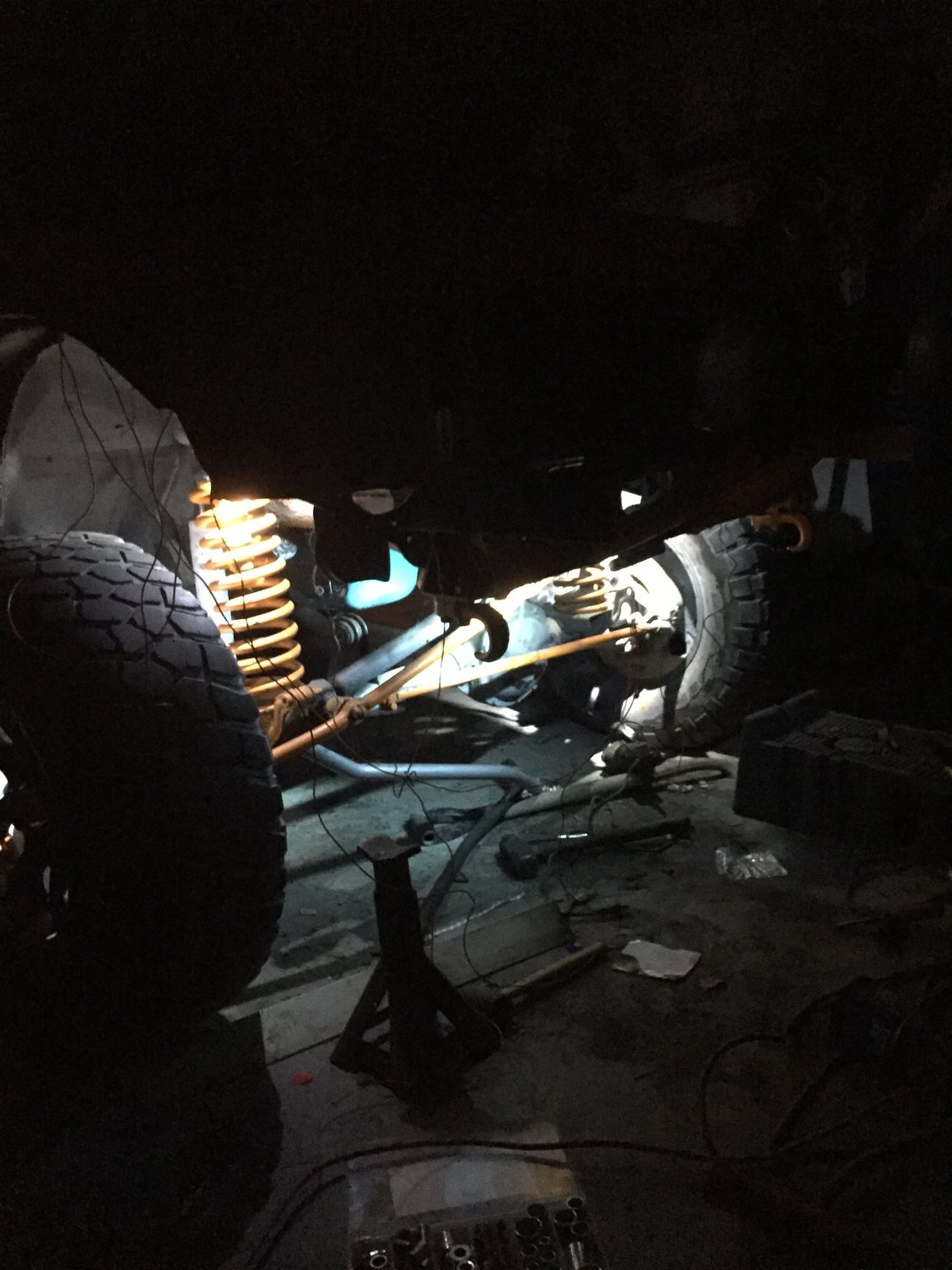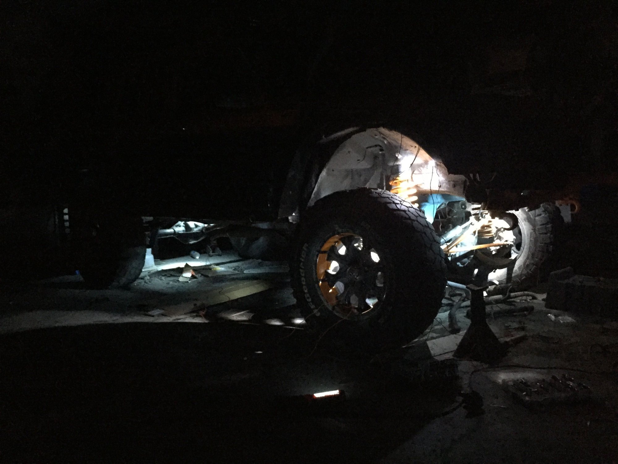 Well I'm taking advantage of the down time I have while waiting for the track bar bracket, so I finally decided to wire up the rock lights rather than them just sitting there not hooked up