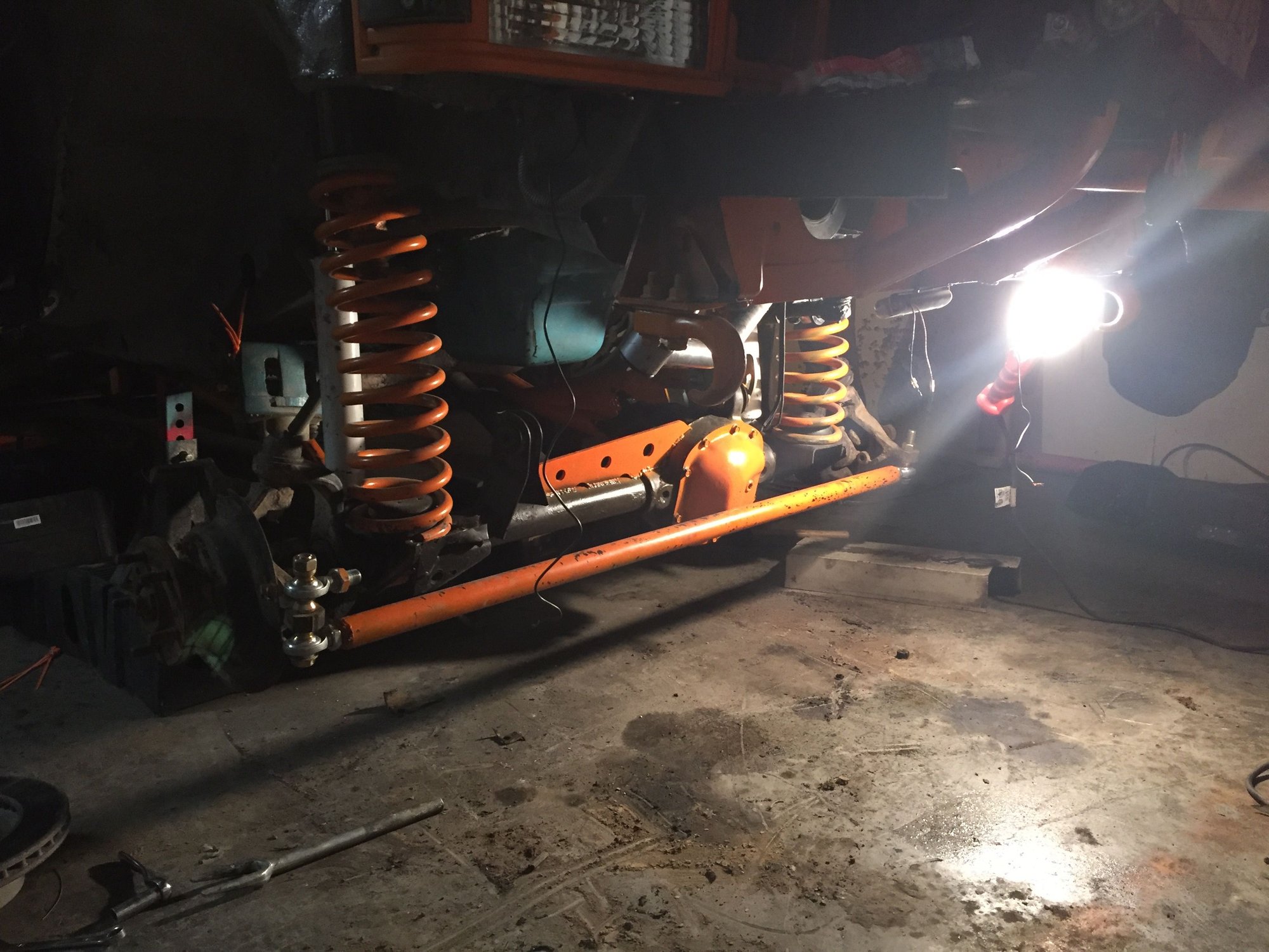 Front axle is in. Needa grab the right socket to pull some things off the old axle to swap over to get the wheels back on it, then it's just dialing in the alignment and getting the drag link bolted in