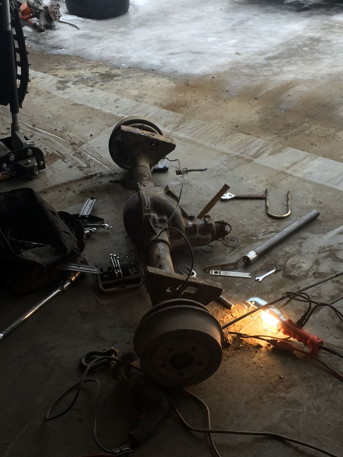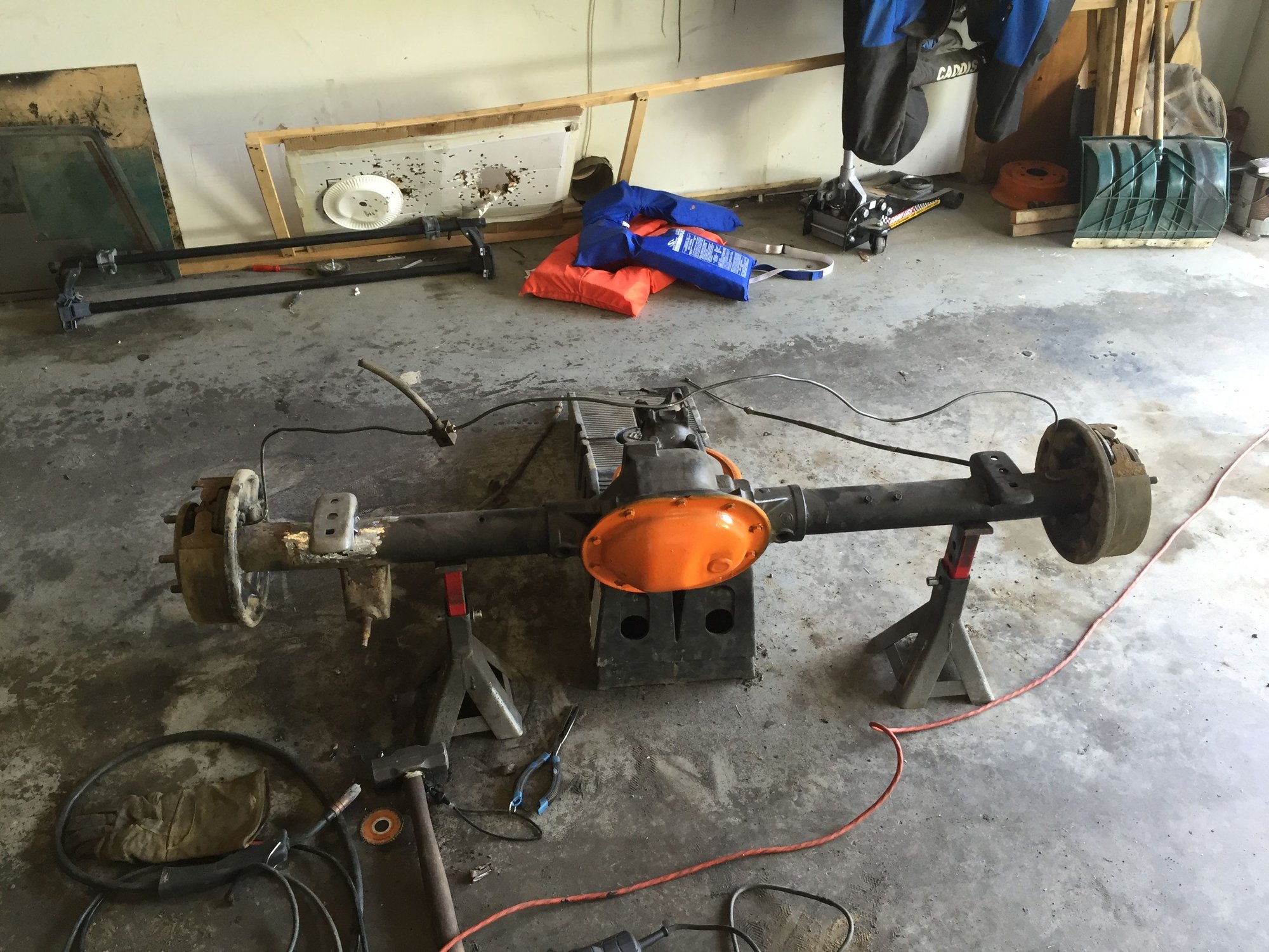 Slowly but surely coming together. Old perches coming off completely along with the shock tabs and then welding in some factory perches and throwing in the new 8.25. Might take a lil longer than expected since half of a perch took 2 cutoff wheels to get it lol