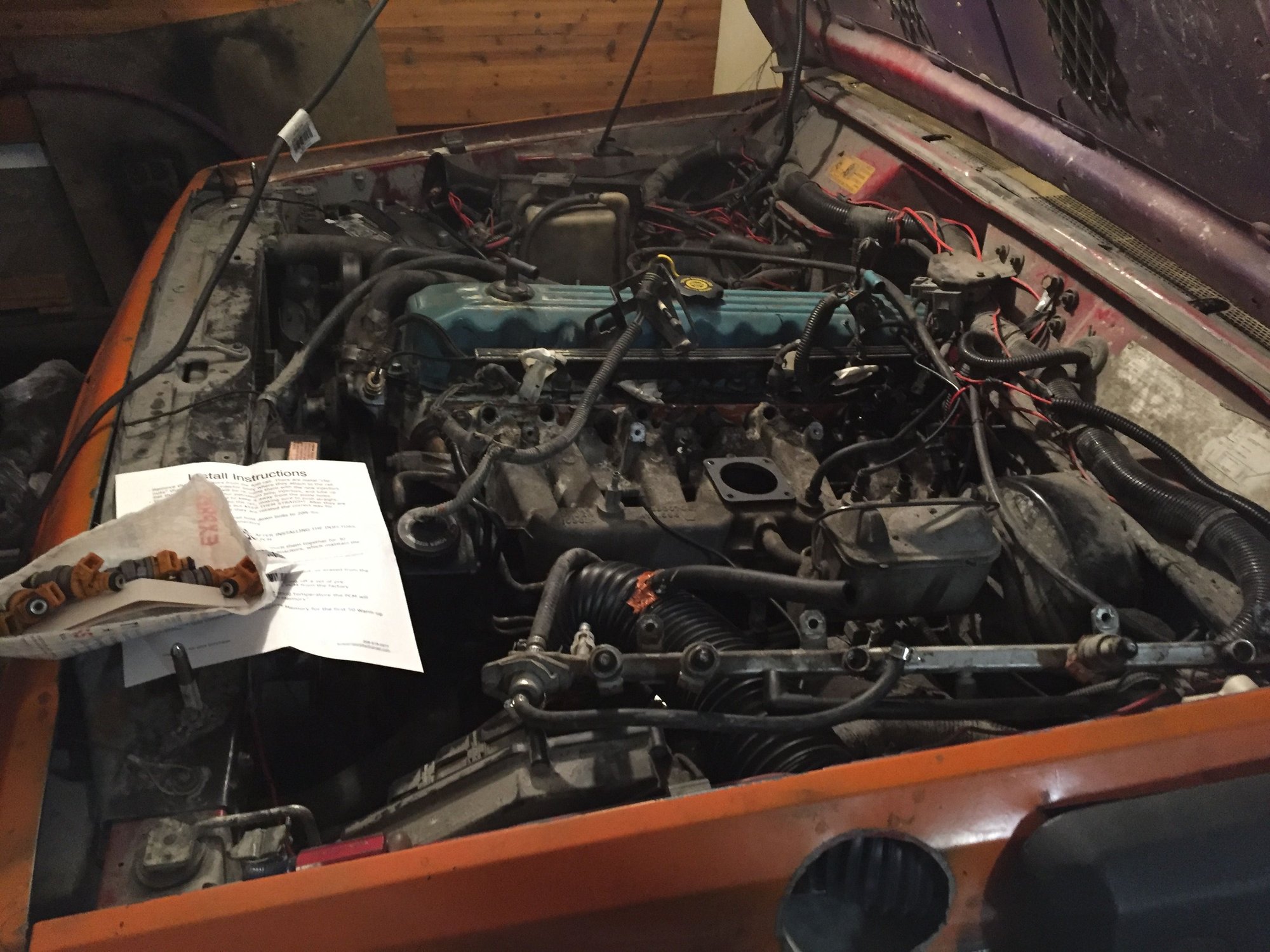 After finding the leaky injector, went ahead an ordered some 4 port injectors. All the symptoms I've found while driving it are very notorious for bad injectors. While it's in the garage, figured since the fuel sending unit is bad/ won't read correctly to replace the whole assembly since it was cheaper to do the assembly than just the sending unit. So it'll have an all new fuel pump as well.