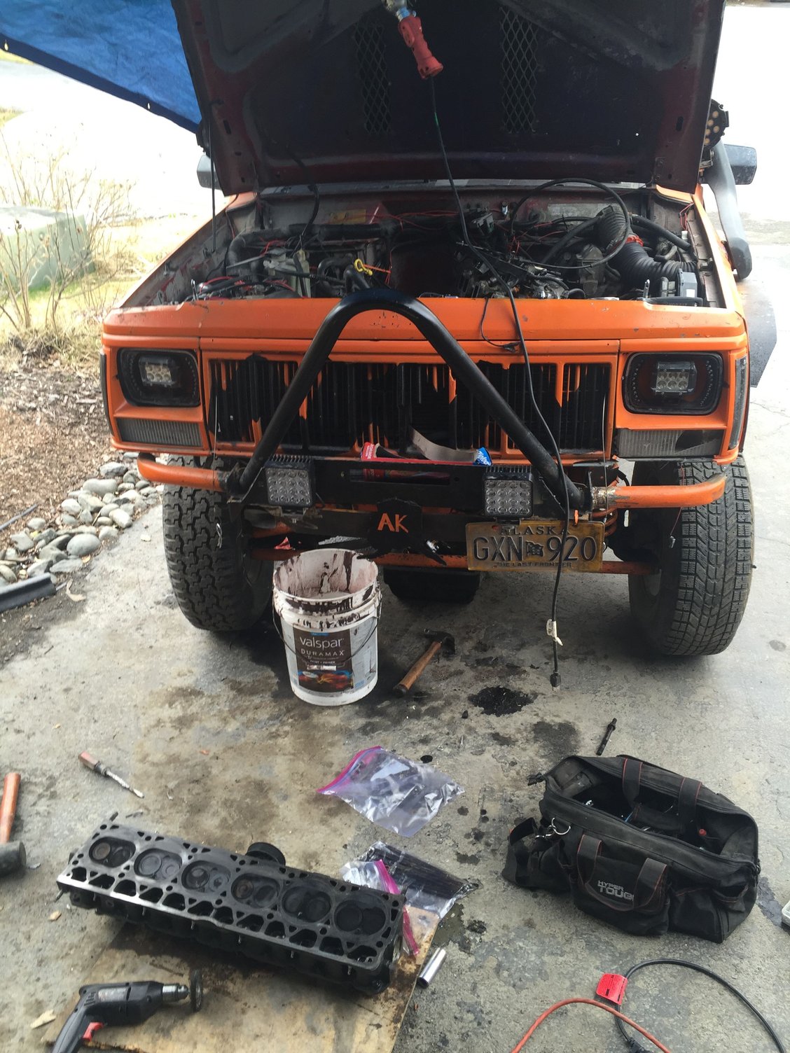 Had a few less hours at work this week, meaning I got some time to finish buttoning up the heep. Just need to run some oil through it to flush the system, get a few gaskets, coolant flush, and finish bolting up the intake/exhaust and she'll be ready for round 2