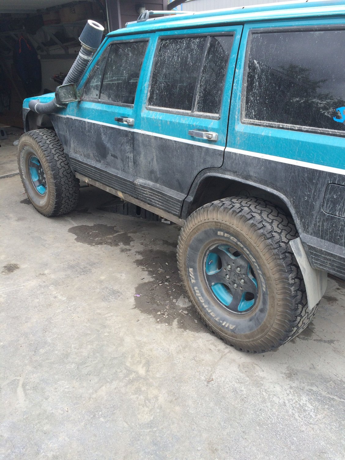 Rear wells and front wells cut. Ended up rubbing really bad on the back (no sway bars) so I added a 1" block for the time being until I get my lift
