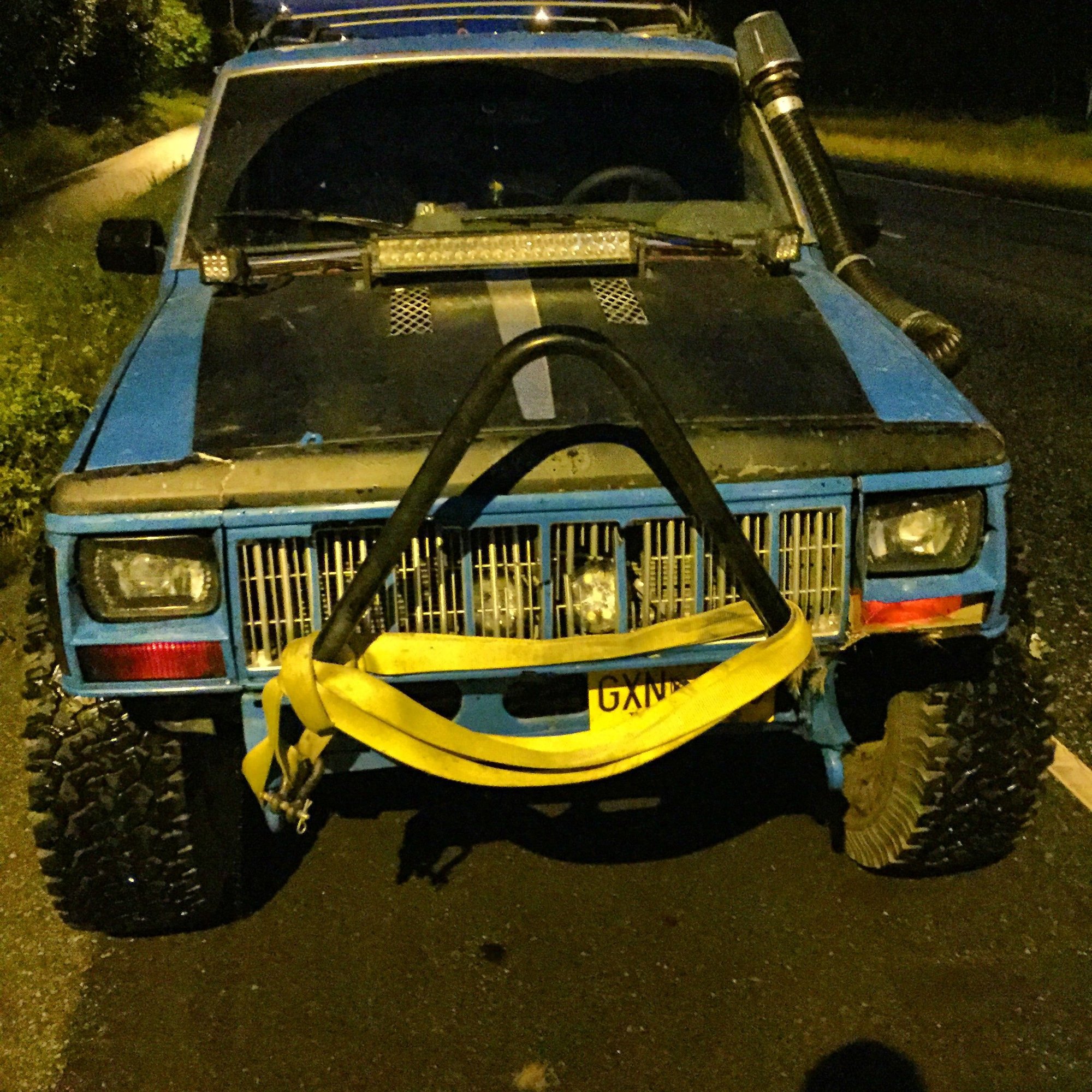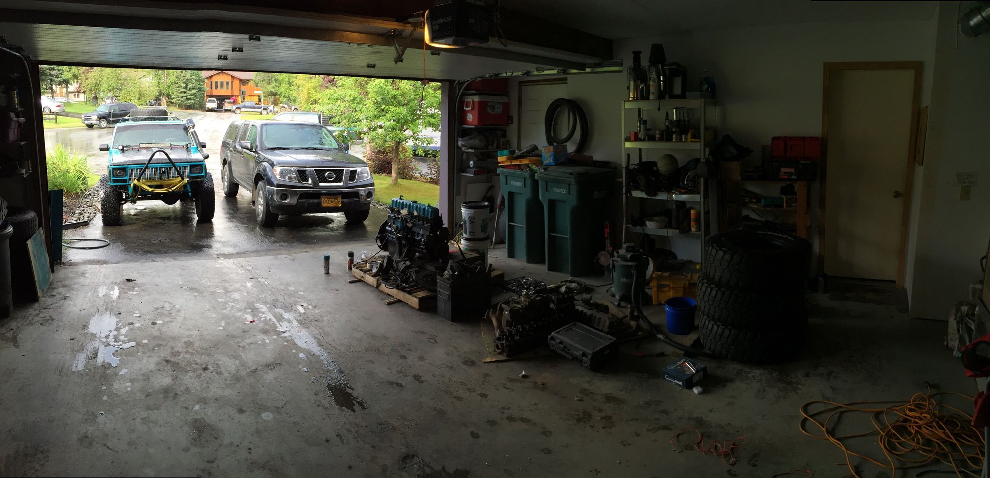 Went out for a lil fun on my way back from picking up a set of 285/75r16 km2s for free!! Have some pretty decent tread left and hold air aswell! Still surprised my parents put up with the fact that I have a motor and 2 sets of tires in the garage....