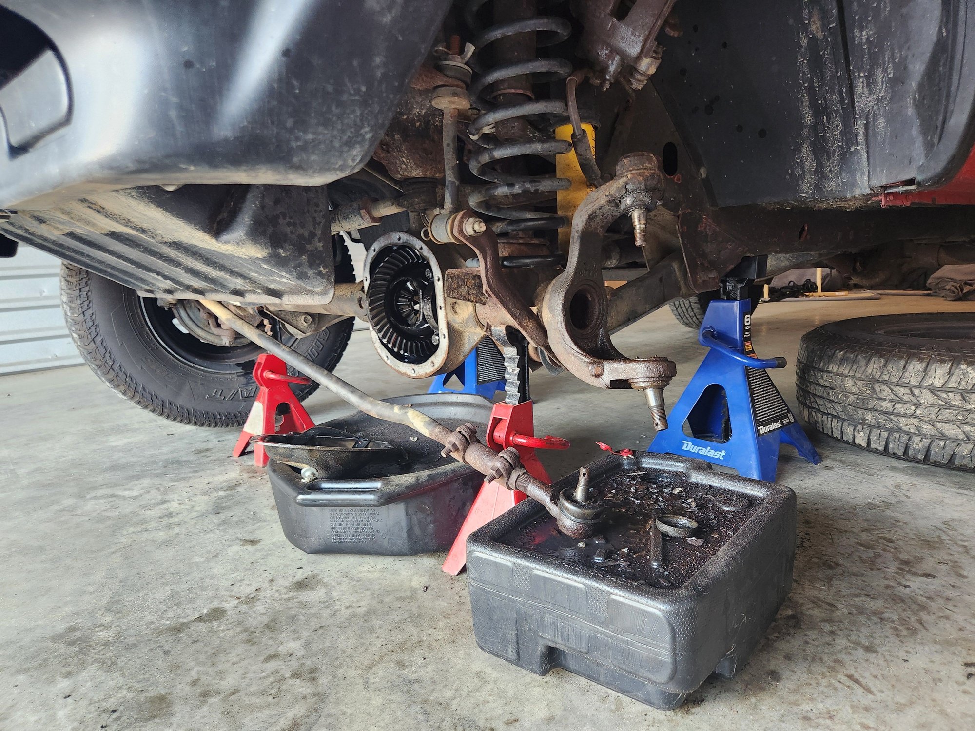 My hope is to finish up the rest (pitman arm, steering linkage, sway bar, gear oil, power steering fluid refill/bleeding) and get it aligned in the next two weeks so we can take it to OBX.