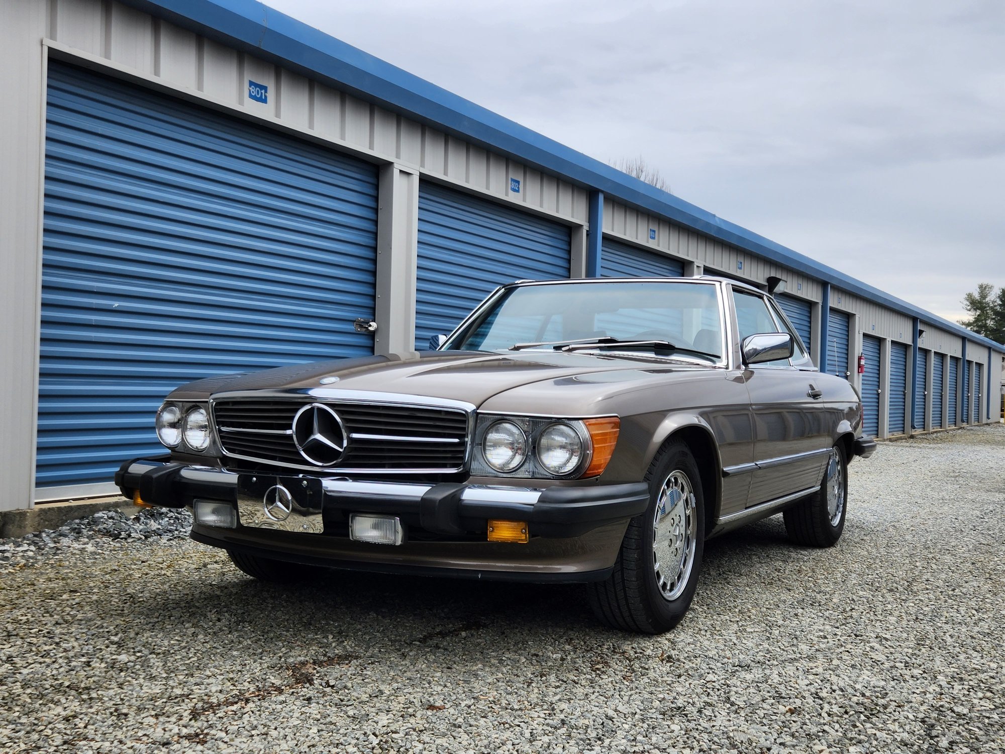 For anyone that cares to know, it's a 1988 Mercedes-Benz 560SL (R107) that my lady bought herself in the summer. It's her fair-weather daily driver.
