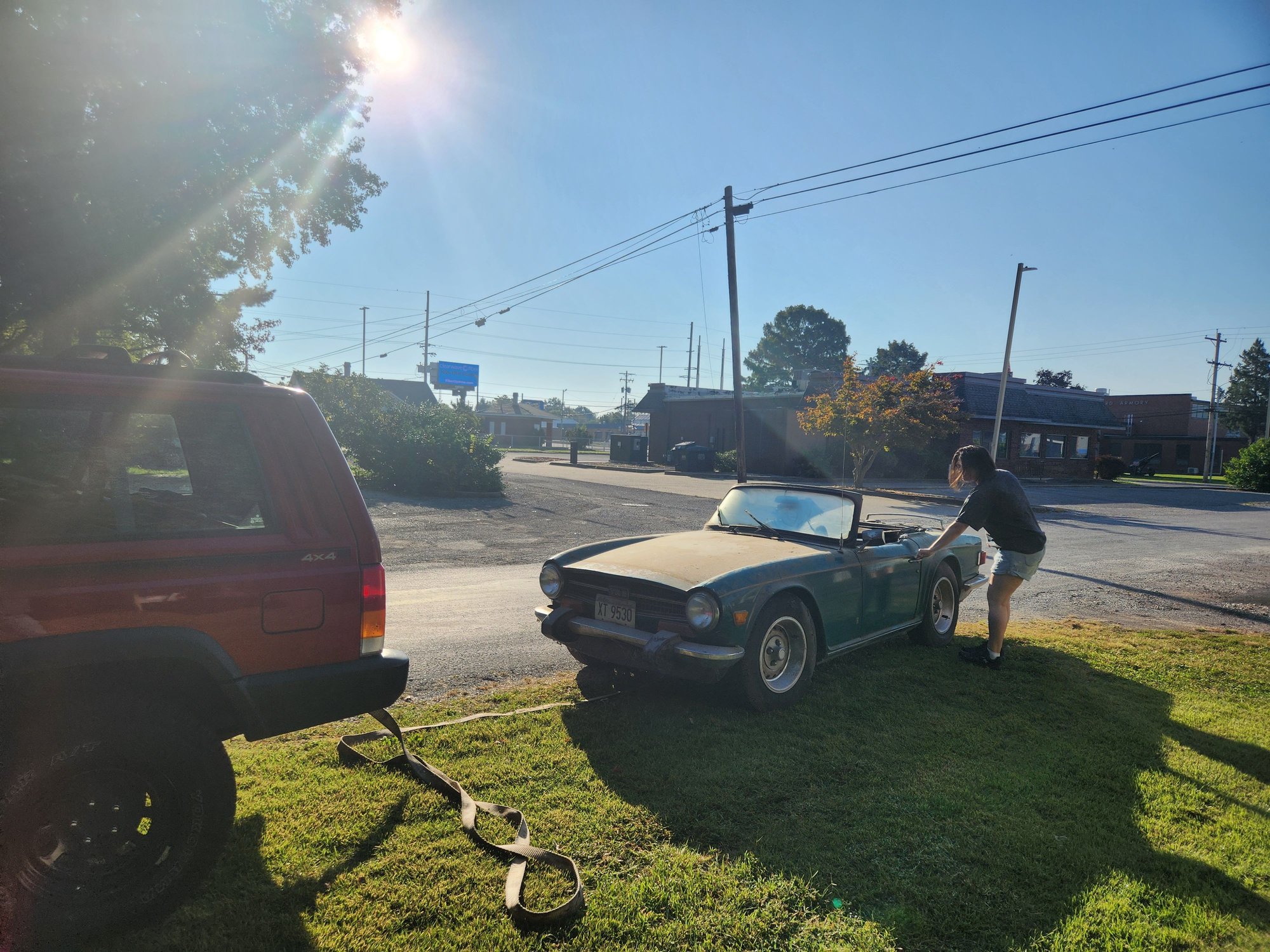 I then almost immediately threw it to the wolves to go rescue the lady's grandmother's old Triumph from the garage it's been sitting in since 1991. That was fun! We had to move it a mile or so down the road to a storage unit so the estate could be cleared. I didn't really want to do this, but... I used the Jeep to flat tow the Triumph! It did incredibly well - even managed to "bang shift it" into low range (I was maybe going 1/2 a mile an hour) to pull the Triumph up the gravel incline into the storage unit parking lot haha.