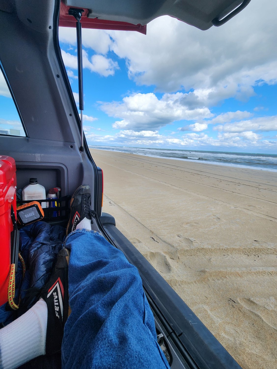 After that, I got the Jeep to pass inspection with flying colors and loaded it down to head out to the outer banks. I didn't take the roof box this time and it was perfectly fine. I hit the beach a few times while I was out there and like always, it did amazing! There was one super sketchy high-tide stormy section that I should not have driven, but momentum, 15 psi, and 3rd gear low range got me through. Every time I drive this thing out there, I want to move there - it's perfection.