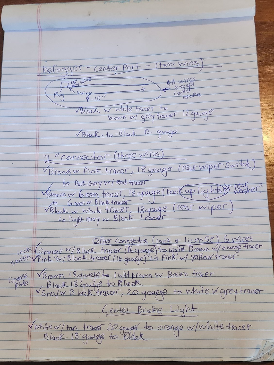 ^^^ A sampling of how I did the final harness fix - shown here is the defogger harness, the general measurements of each replacement, and the butt splices
