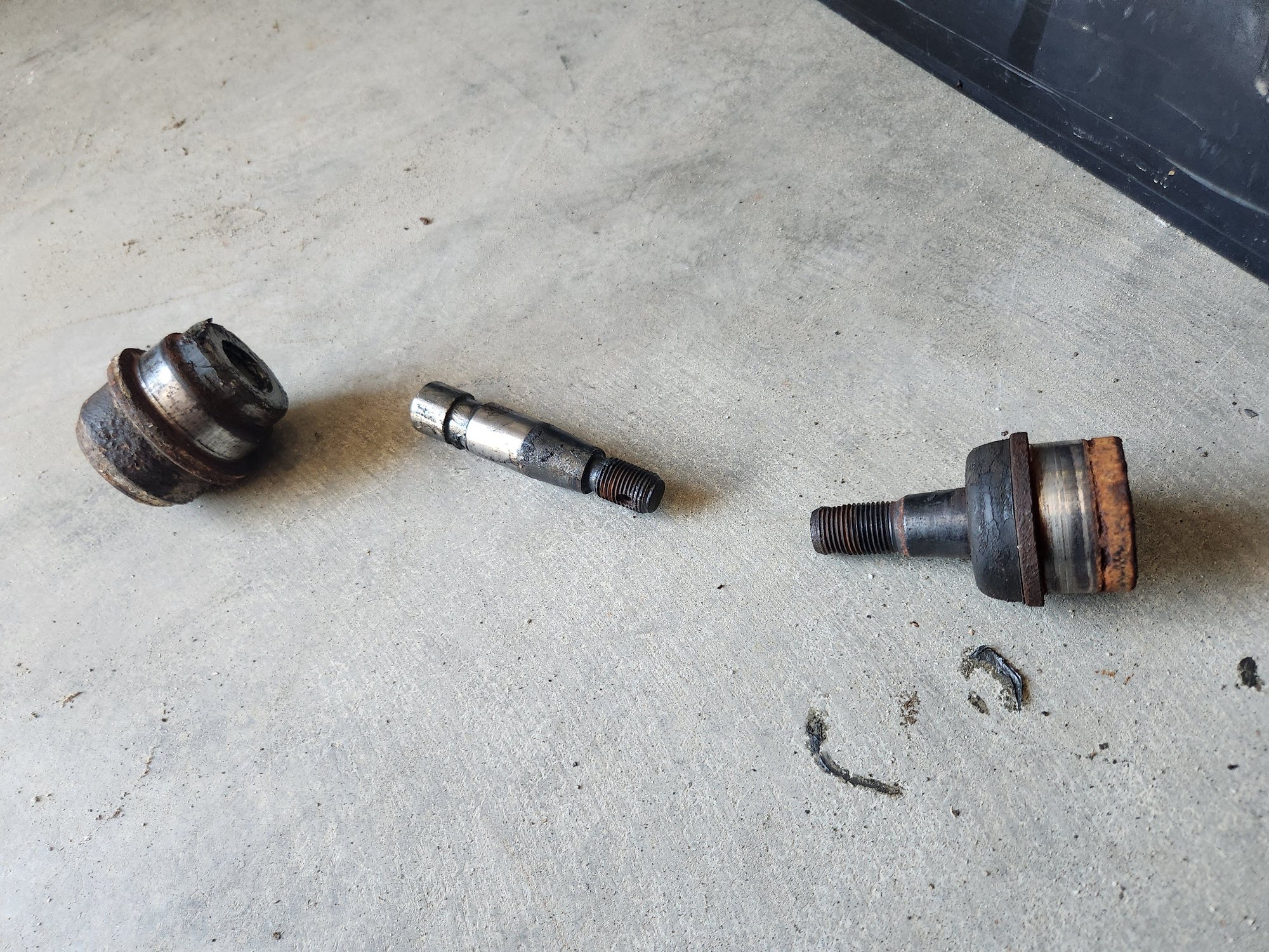 I had bought a set of Alloy USA HD ball joints (the same that I have in the trail rig) but only this weekend actually looked at them... Quadratec shipped me the wrong part (the XJ part number is 11801 - I got 11802 which is meant for a CJ7/8). I also noticed they're knurled and ones I pulled our are not. I don't want to force myself to only buy knurled ball joints so I snagged a set of Spicer 706944X off Summit (better total price than Rock Auto) which should be here on Thursday. I've started disassembling the passenger side in the meantime.