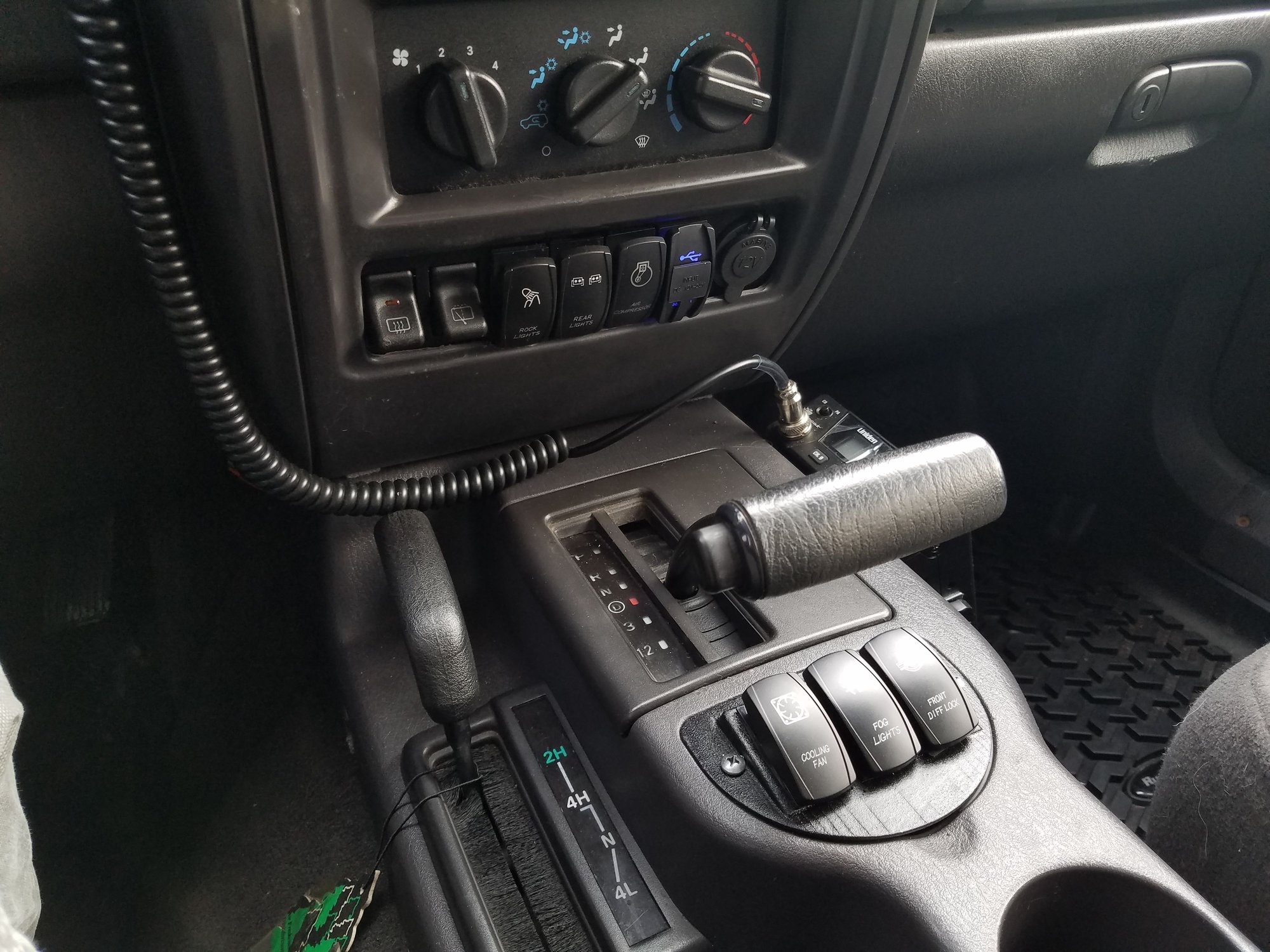 Now it was time for a project that I had been dreading, and putting off for over a year.......wiring. Of course no one really makes a sPod style kit for the XJ without some janky switch panel, so I decided to make my own. The idea was to wire up all of the accessories (small front light bar, rear bumper pods, rock lights, front locker, and efan override switch) as cleanly as possible, with all soldered and heat shrinked connections, and covered in braided wire loom. I ordered different colors of wire so I could use 1 color for each accessory, which would make troubleshooting down the road easier if need be. The switch panels came from @wizardpc ( xjswitchpanels.com ). The ARB style switches came from eBay, I chose these over others simply for fact that the descriptions on the switches light up with your dash lights so you can read them at night, and I found a same style dummy switch that is a dual USB port that puts out 3 amps of output for "fast charging" devices . I also ordered some blue led dash lights to match. The rock lights are nothing fancy just some "Eagle Eye" LEDS from Amazon, and I wired the rear bumper pods into the reverse lights so you can see behind the Jeep when backing up.