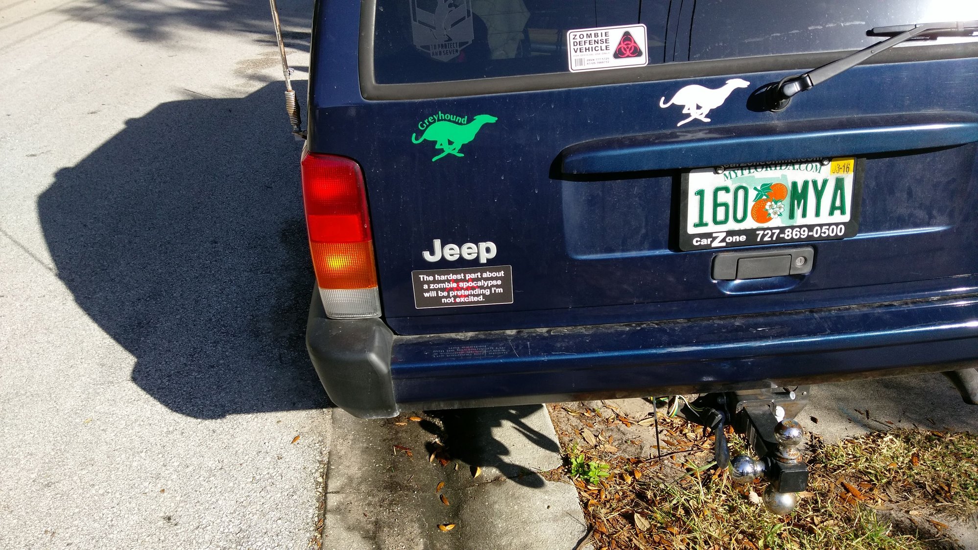 I've already added a set of white led flashing lights to the front bumper and grille, a custom made grub box with a stove built into the lid for the cargo area and installed a rear trailer hitch made by hidden hitch that I salvaged from a 1987 XJ.