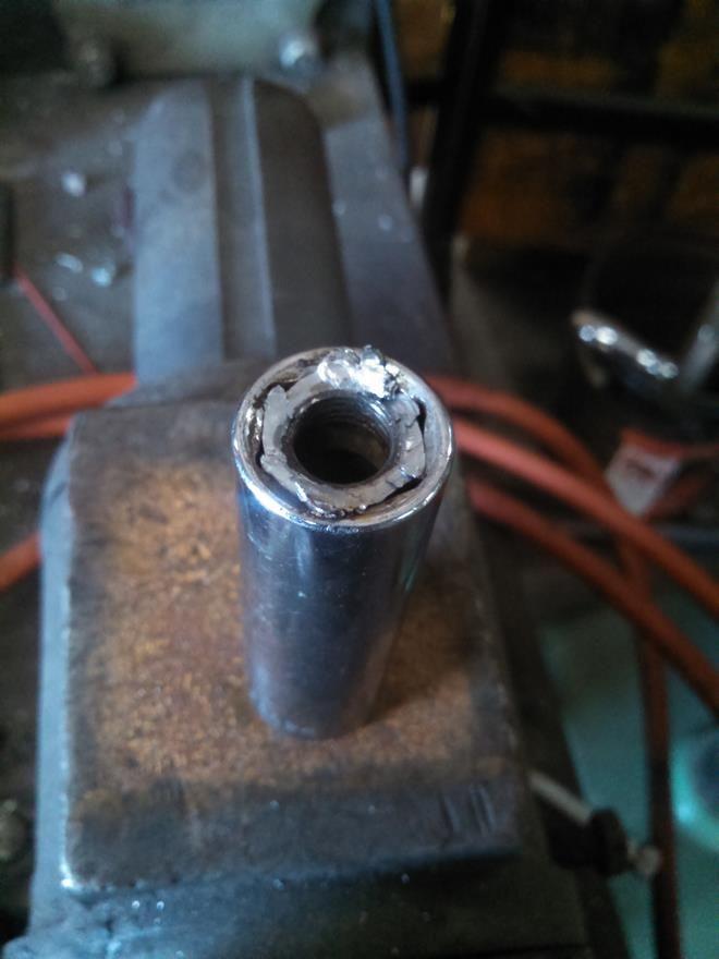 So, then we took an ox-acetelyne torch to it, and cut out the lug, and the metal around the lug. Then a few dozen smacks of the sledge hammer. Even drove the Jeep around, without any lug nuts attached.