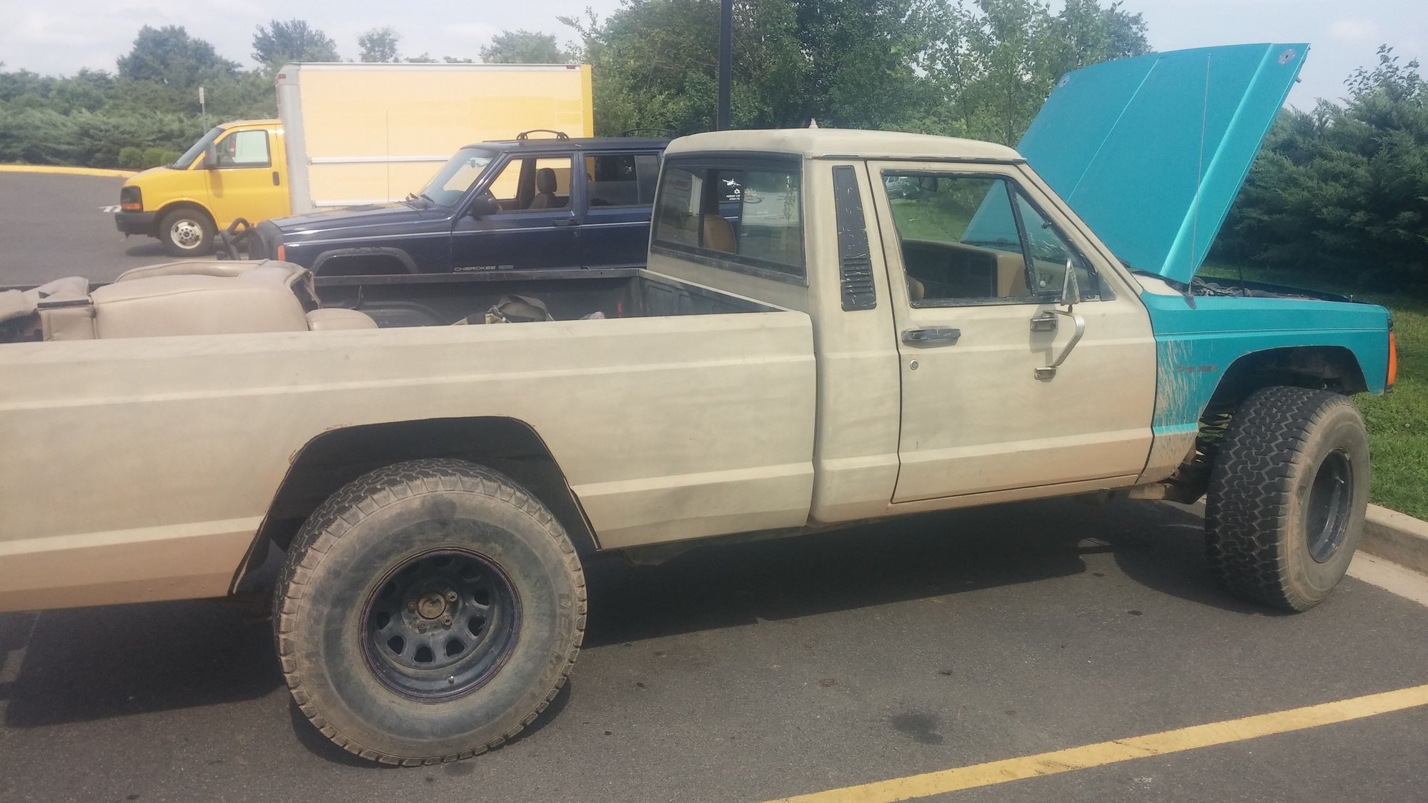I'm glad at least one person gets the joke. I'm not sure about duct tape, but the fact that half the parts I've put on so far aren't from a Comanche might make up for it. Even have some Ford brake parts on the rear. Someone disc swapped the D44. Maybe I'll rig up an ice smoothing attachment so it can do double duty as a Zamboni.