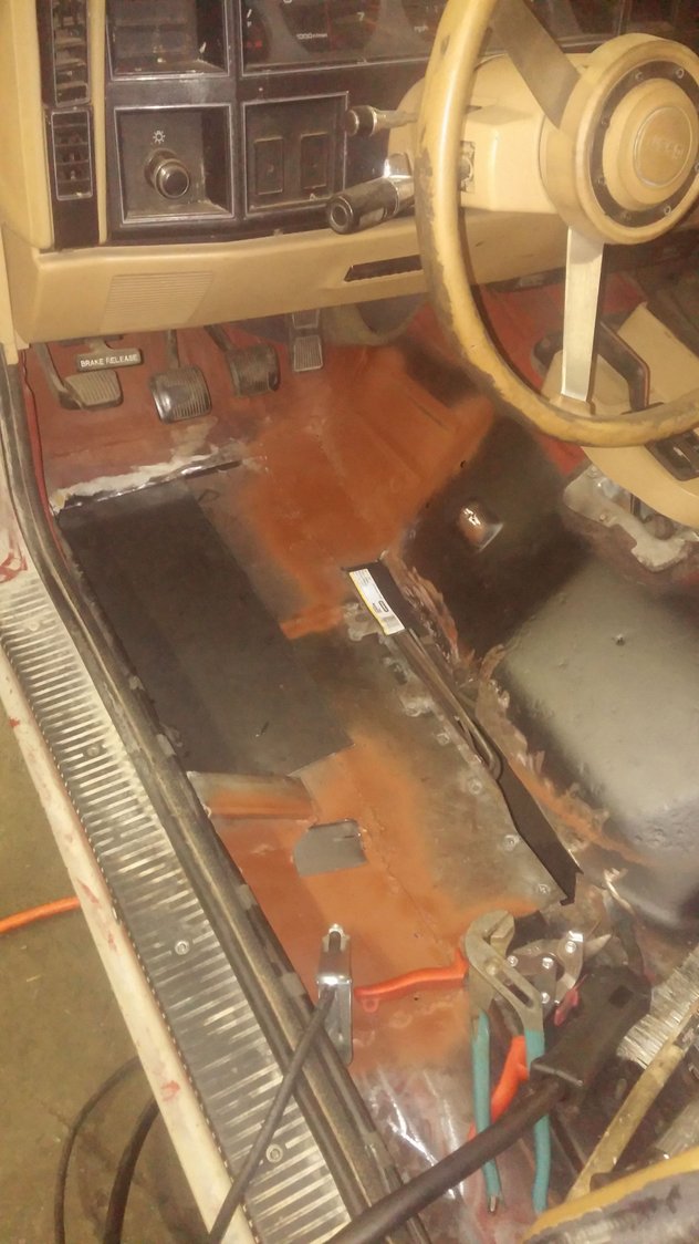 Rigged up a bastard pack for the rear springs. Will get some new ones later, but this good for now. I used Toyota T100 shocks for the rear. They're firm, but not bad. Cost was a factor, and they worked for the required length. Also sanded and painted some. Will be using monstaliner on whole exterior when temps allow. Some 2x4 box tubing is also awaiting a free day to cut and replace rotten rockers.