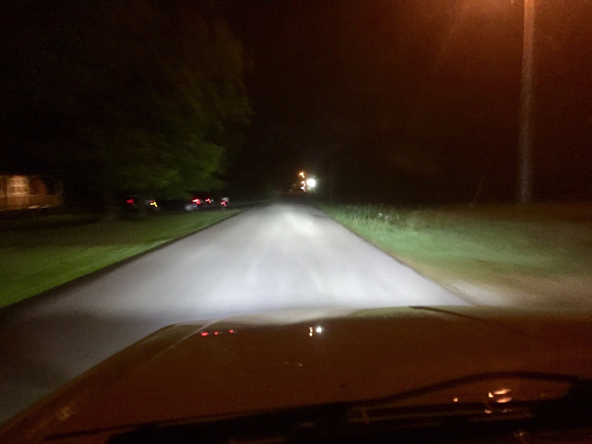 Here are the night shots. And they really don't do it justice. Before I'd sometimes look down at my headlight **** to make sure I'd turned them on. I legitimately couldn't tell. You guys know what I'm talking about, you've all been there. "Are my headlights even on? Are they burned out?" But now? Now I'm afraid I'm going to run everyone I meet off the road. It's great.