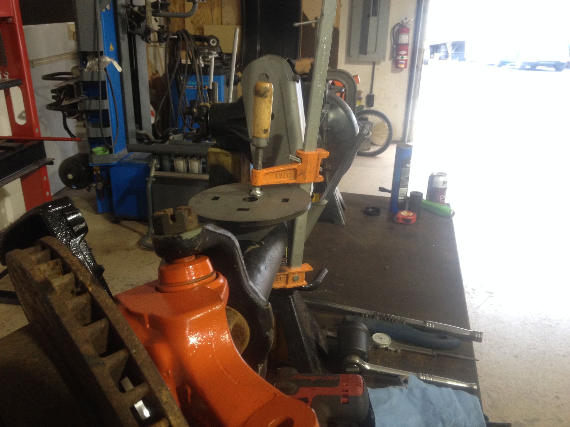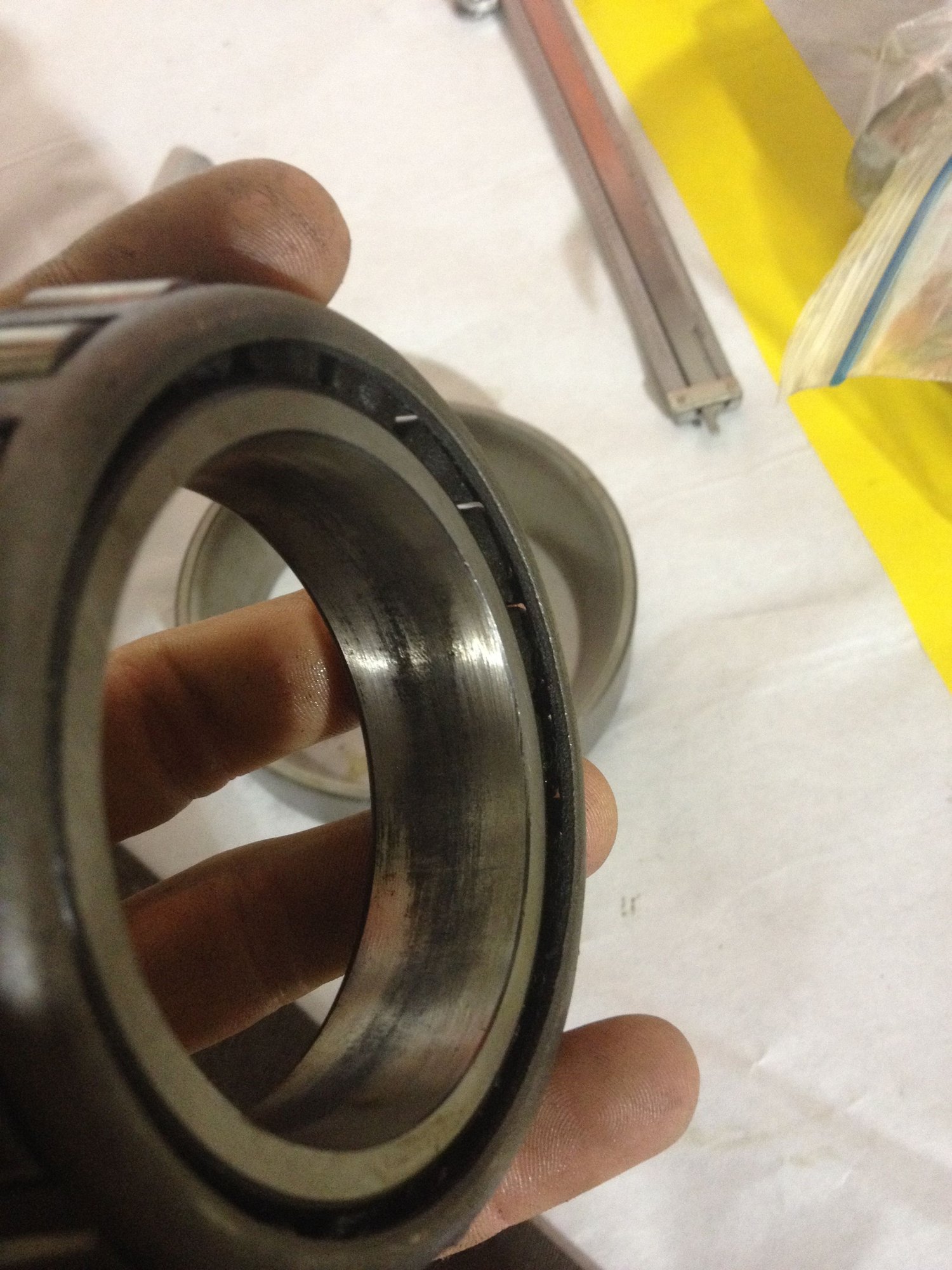 Made a setup inner pinion bearing race by chucking it up in a lathe and ground it down with a 50 grit abrasive disk on a grinder.