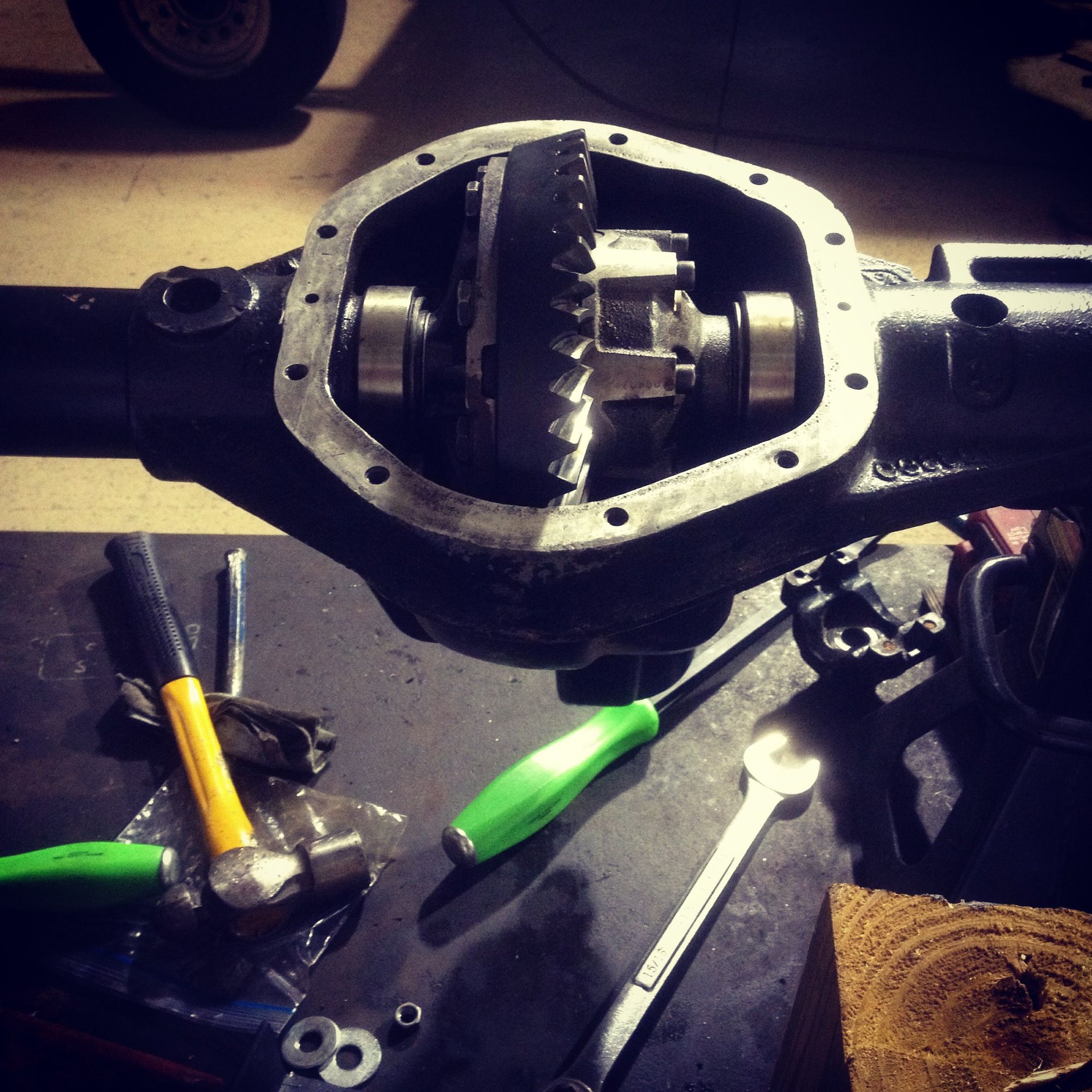 Did some work on the front axle today. a little more info on the axle = its a dana 44-9f out of a 79 f-250 high pinion. Did all new seals and bearings