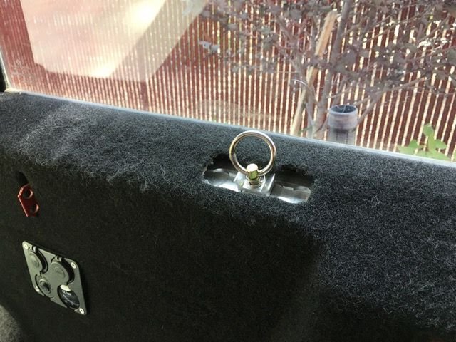 I used the old seatbelt hole, and mounted a small strip of L-Track in there. I actually drilled through the thin sheet metal, and added a piece of 1/8" plate under it that is tapped to accept the screws. It is very solid!