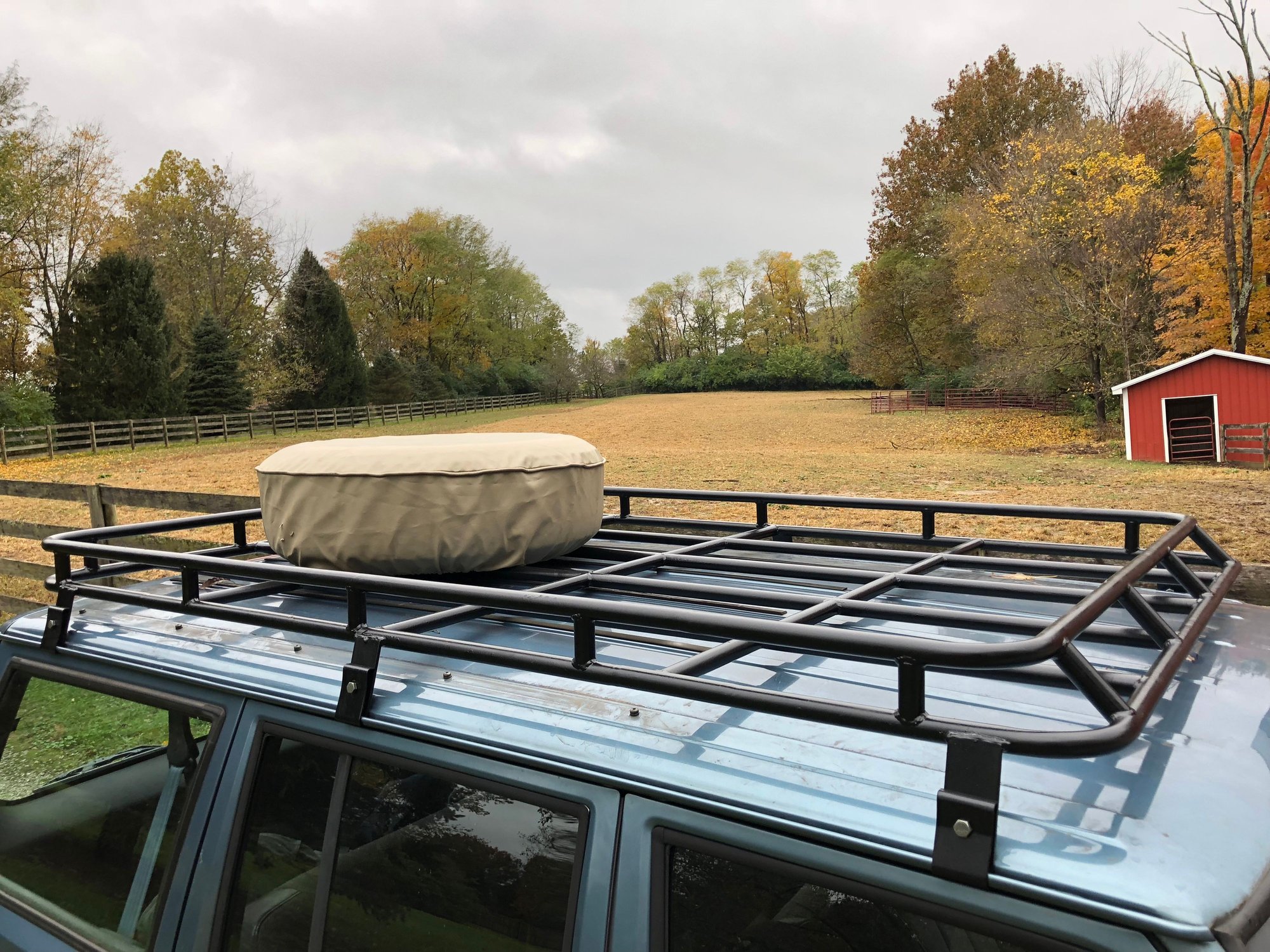 I really love how the rack turned out. I made it because it was the best option I had at the time for getting the spare tire out of the Jeep. As some of you may know I had been looking at getting a swing out tire carrier bumper but decided against it since they’re too expensive for my taste. Having a tire on the back is preferable for me since having it up top cuts down on gas mileage. But recently I worked out a way to still do the swing out carrier without buying/making a new bumper. That project is underway now but for the time being the tire is going to stay on the rack. If you have the ability to notch and bend tubing, and can weld, this could easily be under a $100 to build. It cost me a little extra since I had to have so much of it done.