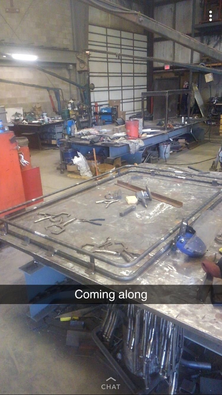 I mentioned a while ago that I would be starting on some storeage related mods. Well I eventually got to them. I’ll admit I’m a little late posting this seeing as this project has been done for a few months now but whatever. Last year I upgraded from a donut, to a full sized spare. And while I’m glad I did, I hate how much room it takes up in the back even though my tires are still stock size. So I decided to make a roof rack so that I could throw the spare tire up there. The rack was to be made out of 1” tubing. And seeing as I don’t have the ability to weld, notch, or bend, most of the work I did was designing it. After taking measurements and drawing up a 3D design on my computer. I let a fabricator buddy of mine take it from there. Here are the first few pictures of the rack.