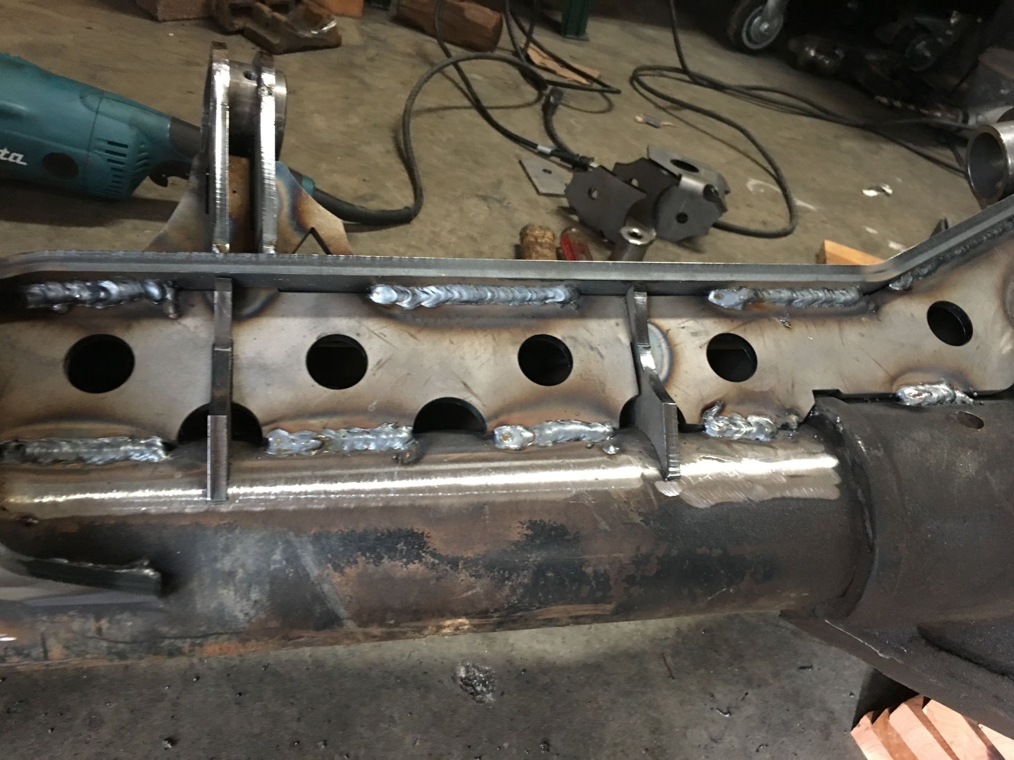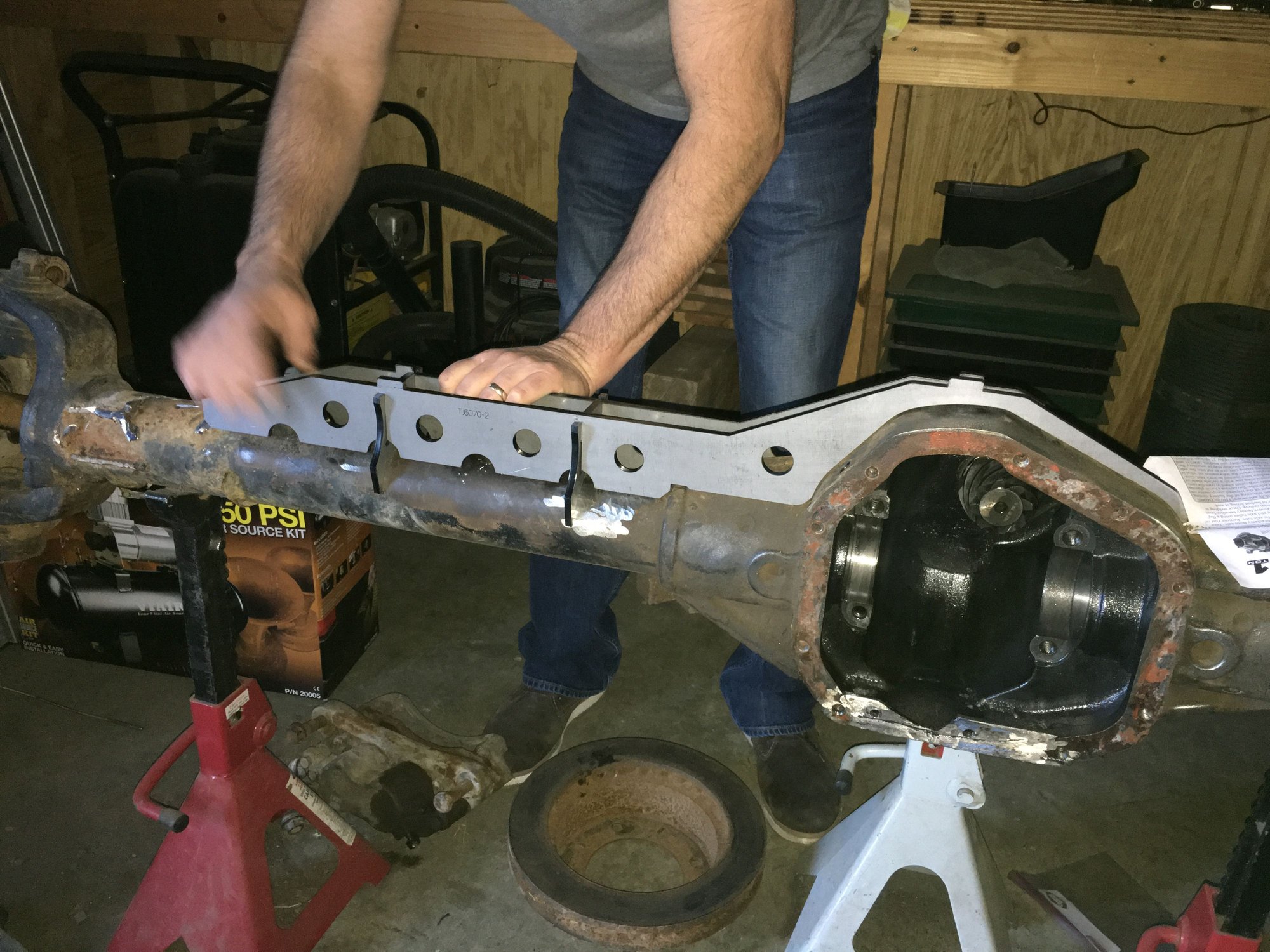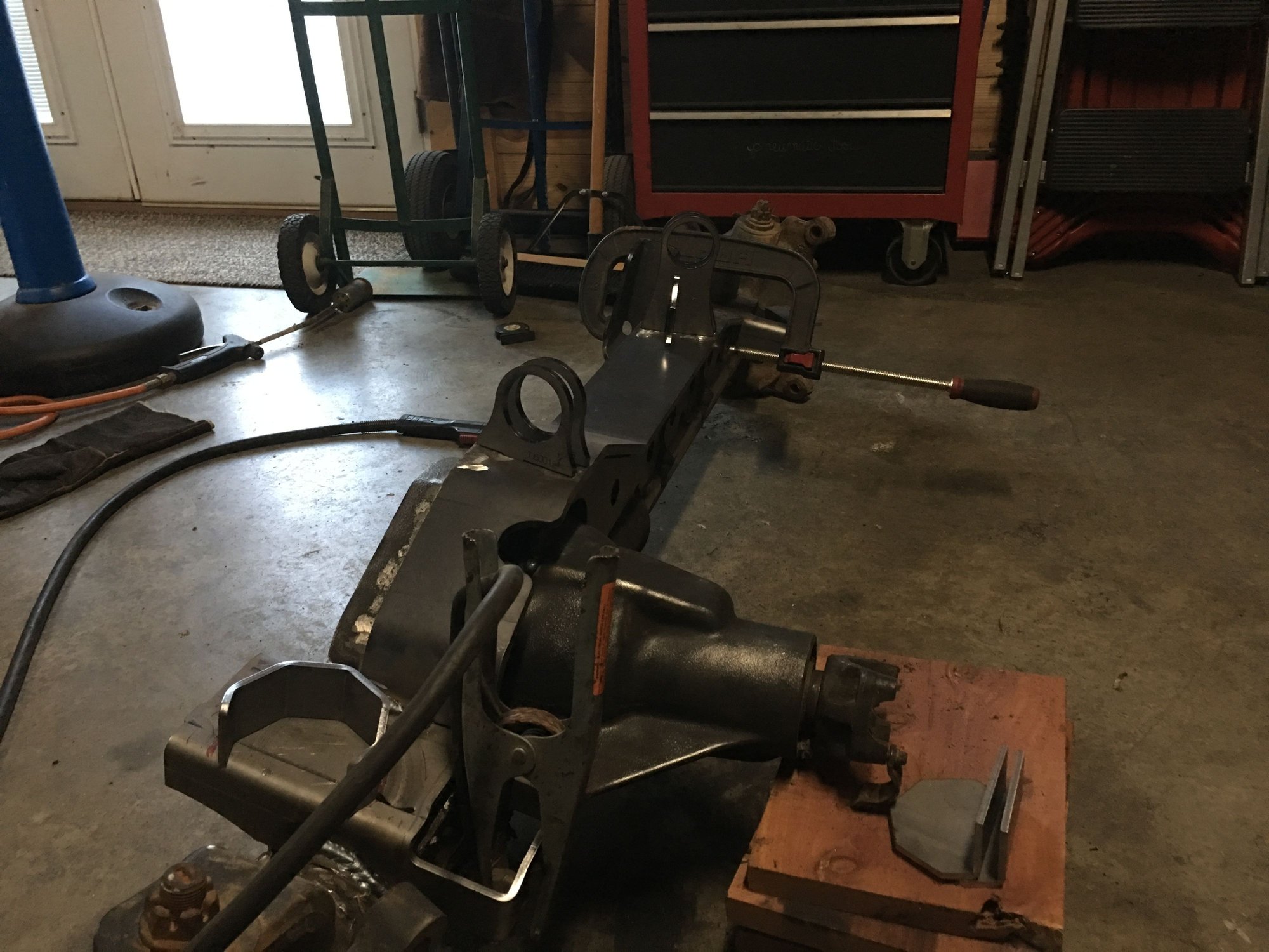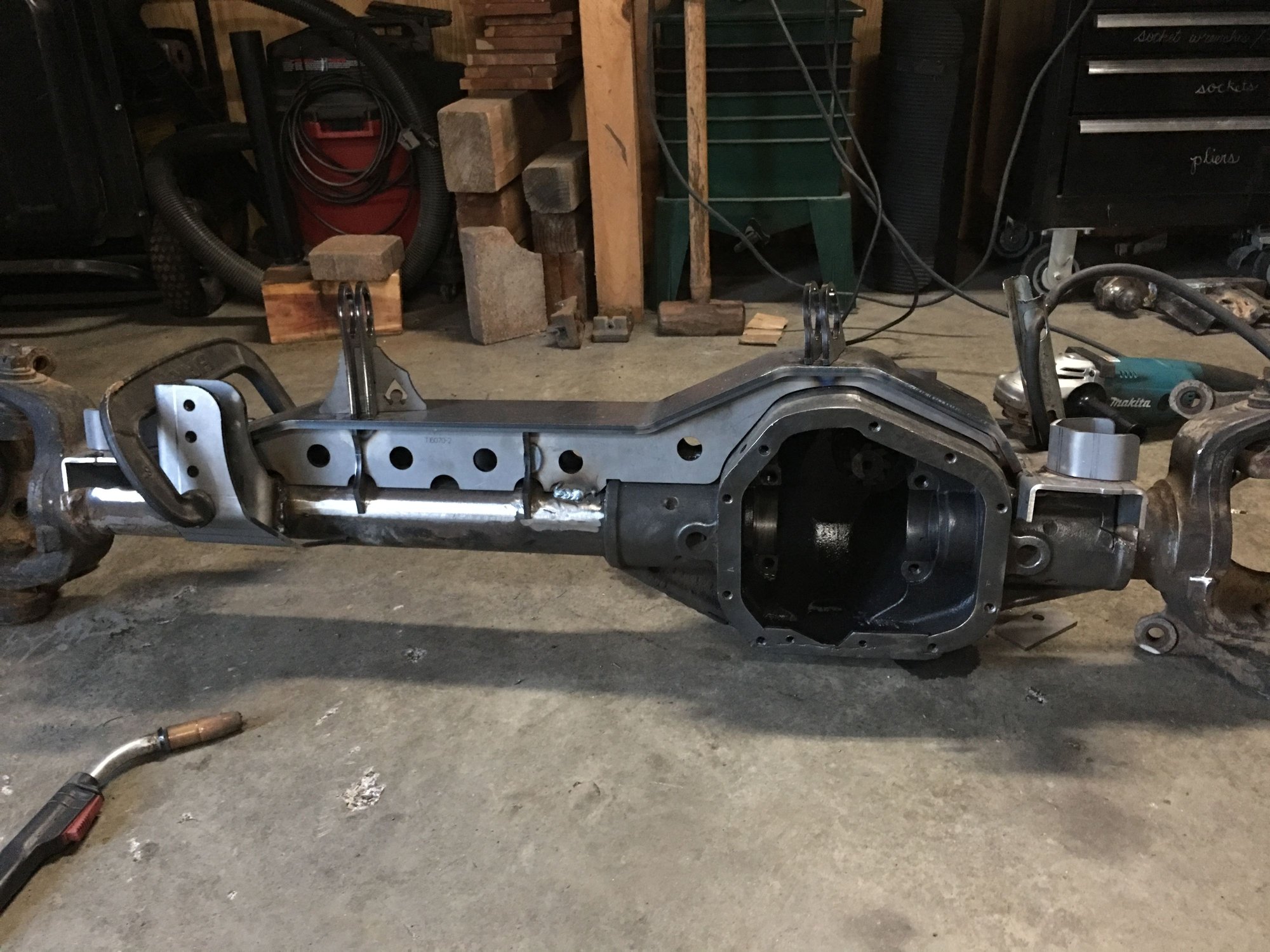 Assembling the Artec truss on the Dana 50 front...the truss has some larger gaps around the differential housing due to some minor difference in the 50 housing from the 60...welded it up in short bouts letting it cool between short runs...no issues from doing it this way...no need to rush this job and warp your housing just be patient...truss fit together beautifully...really strong even with imperfect welds. Had to strip old bracketry from the axle in addition to some of the casting on the driver side...we only did as much as we had to get the truss to seat properly. Not as much taken off as many usually mandate.