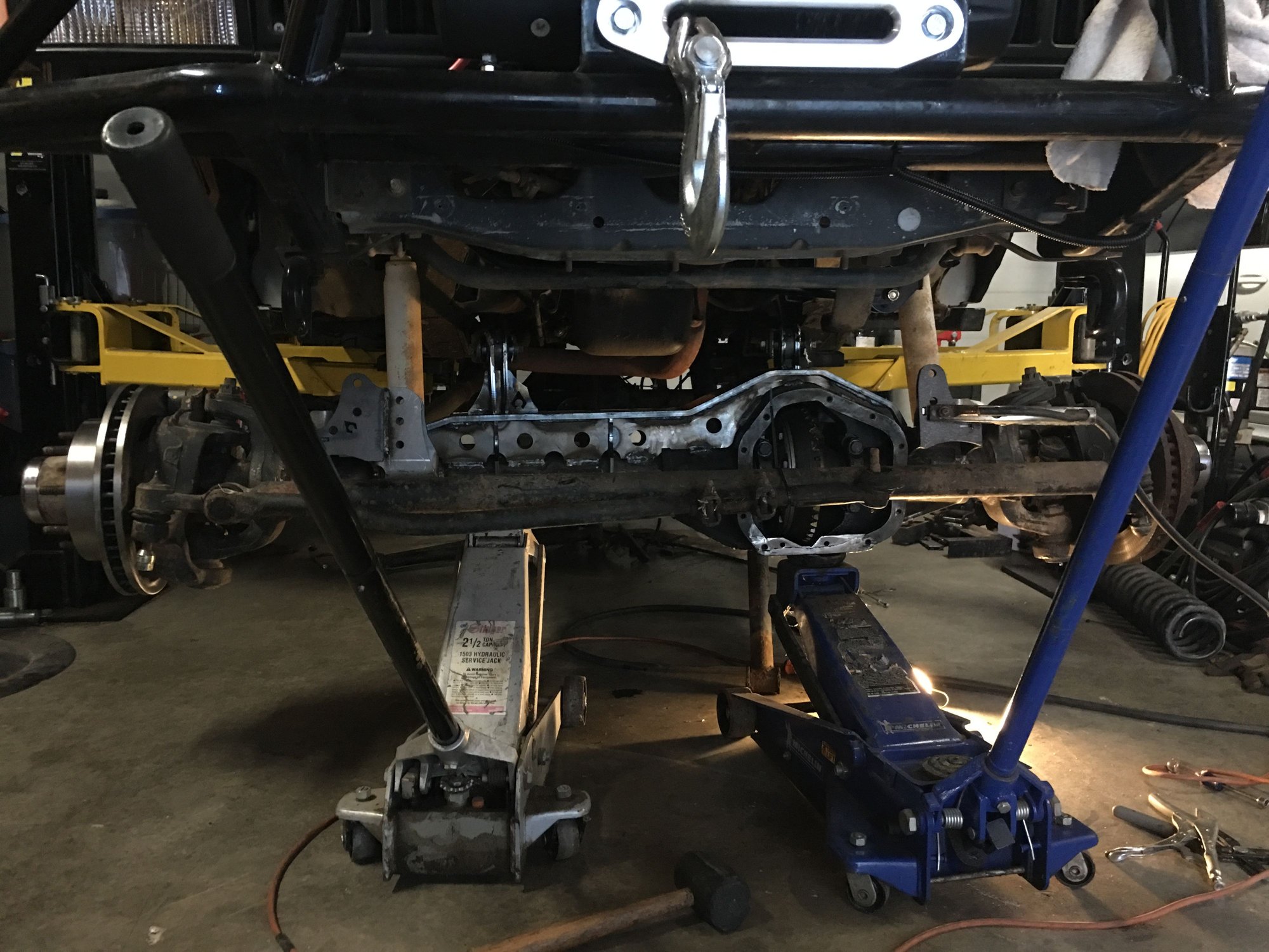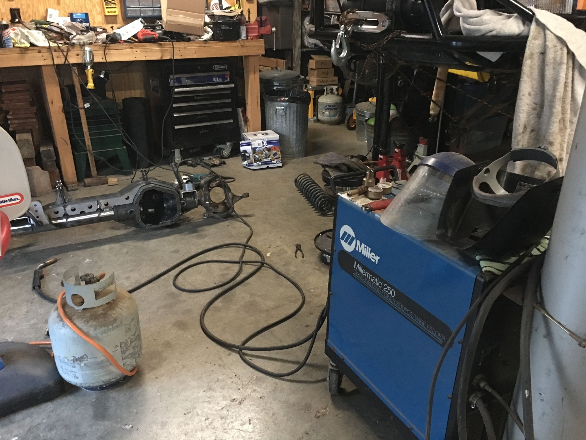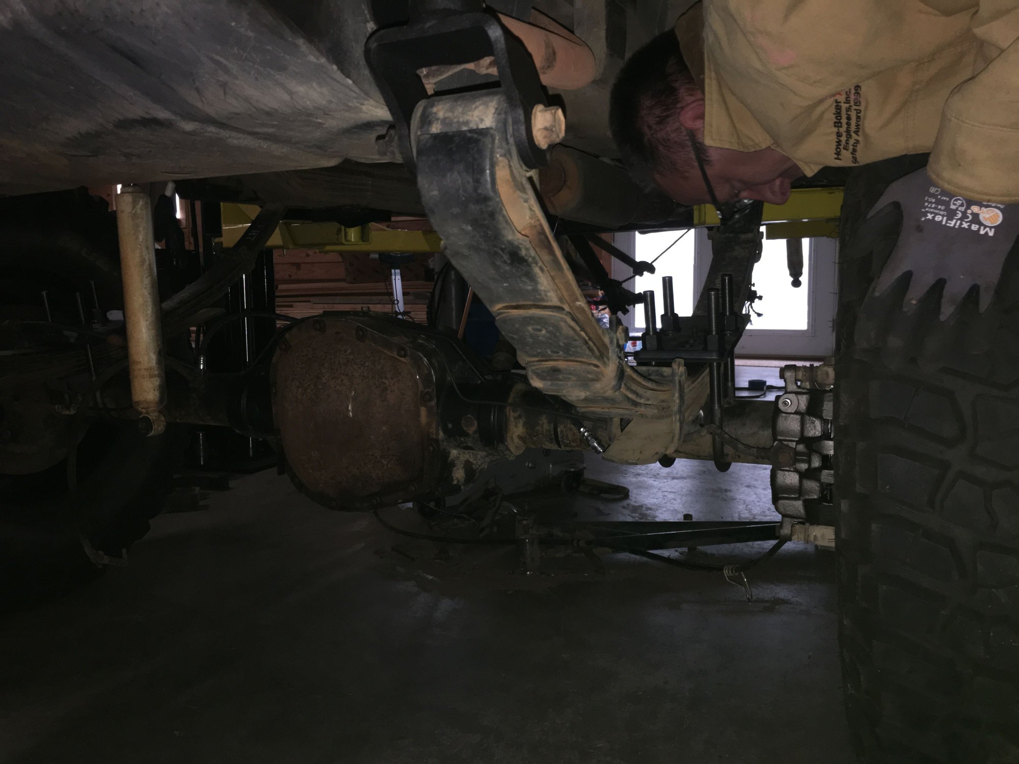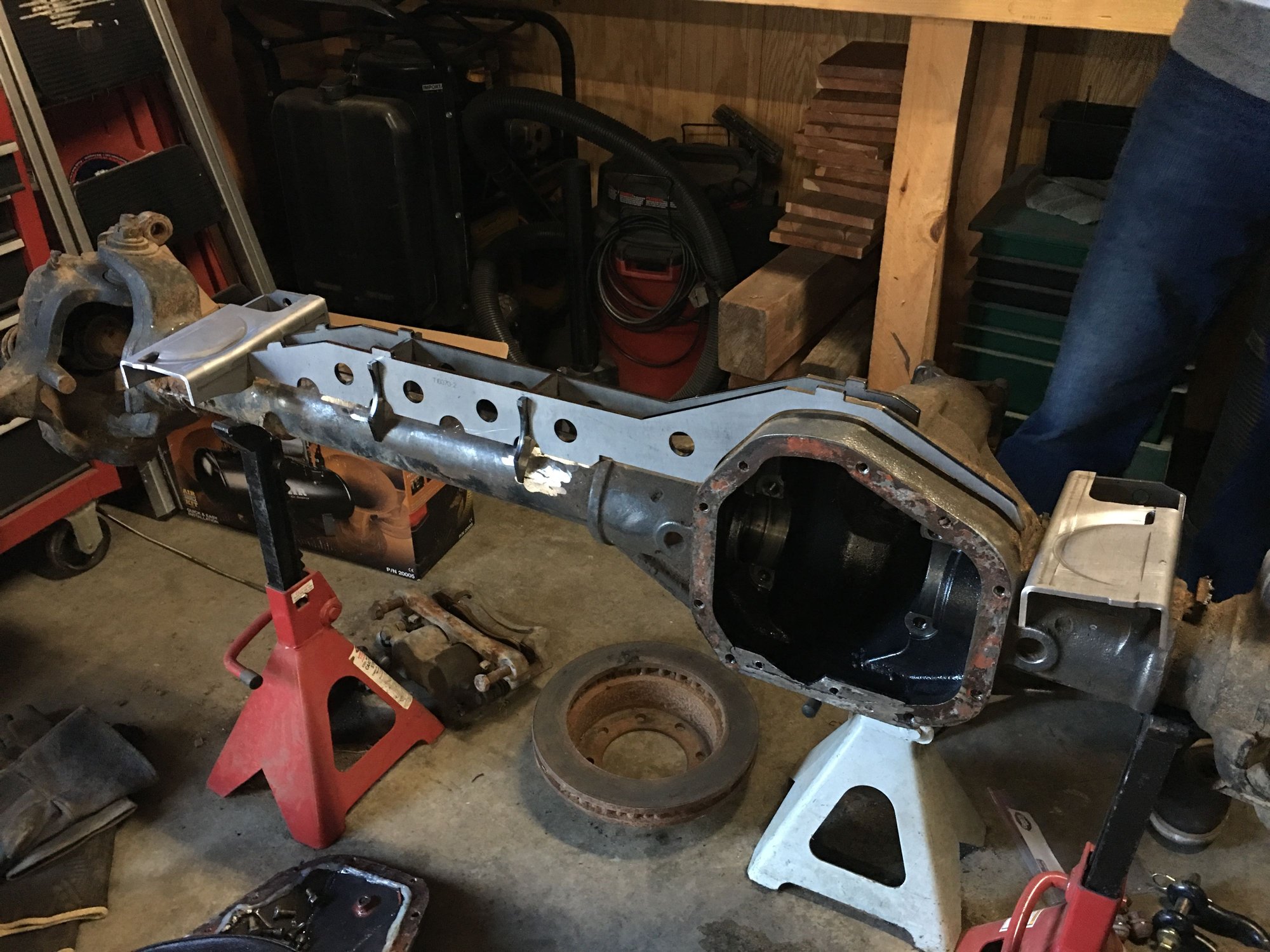 Assembling the Artec truss on the Dana 50 front...the truss has some larger gaps around the differential housing due to some minor difference in the 50 housing from the 60...welded it up in short bouts letting it cool between short runs...no issues from doing it this way...no need to rush this job and warp your housing just be patient...truss fit together beautifully...really strong even with imperfect welds. Had to strip old bracketry from the axle in addition to some of the casting on the driver side...we only did as much as we had to get the truss to seat properly. Not as much taken off as many usually mandate.