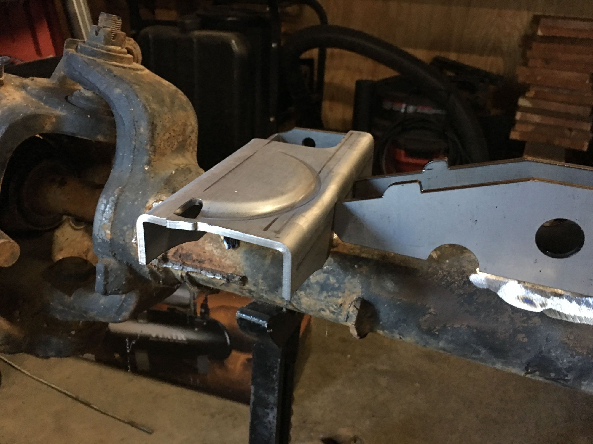 Also with the rear setup we re mounted our single floating traction bar setup....the bar and shackle is from Sam's off road and we mounted it with a sandwich plate....flat plate under carpet in rear passenger footbed and angle L bracket on bottom bolted together for a wide footprint on the unibody. No flex, bending or movement has ever occurred with this setup...way easier than fabbing a heavy tube crossmember to clear the exhaust and driveshaft etc.