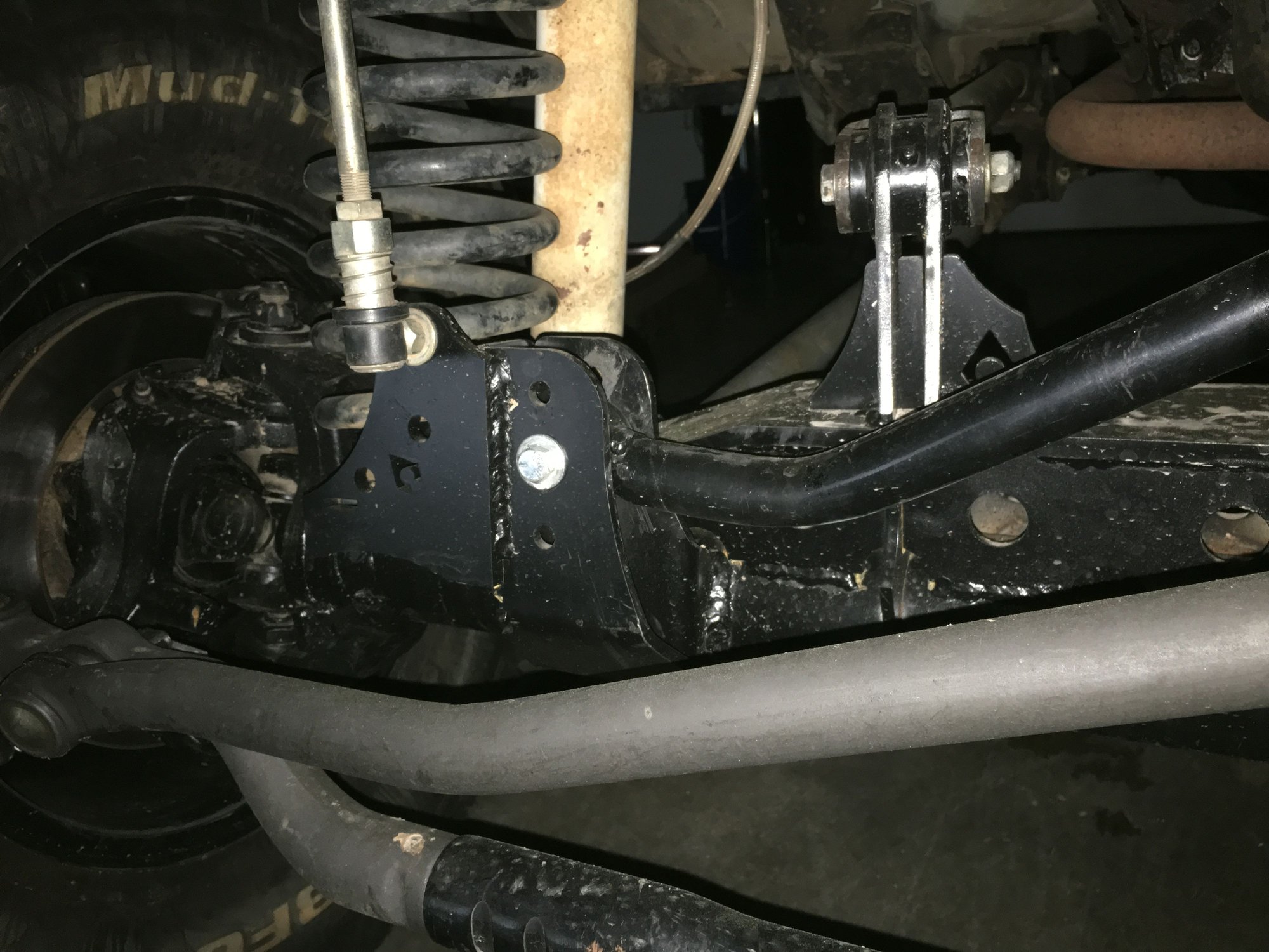 Used HD Rustys track bar. We had to shorten the bar by 3/4 inch and reweld the bung back on to get the proper adjustment...its all in the little things :P