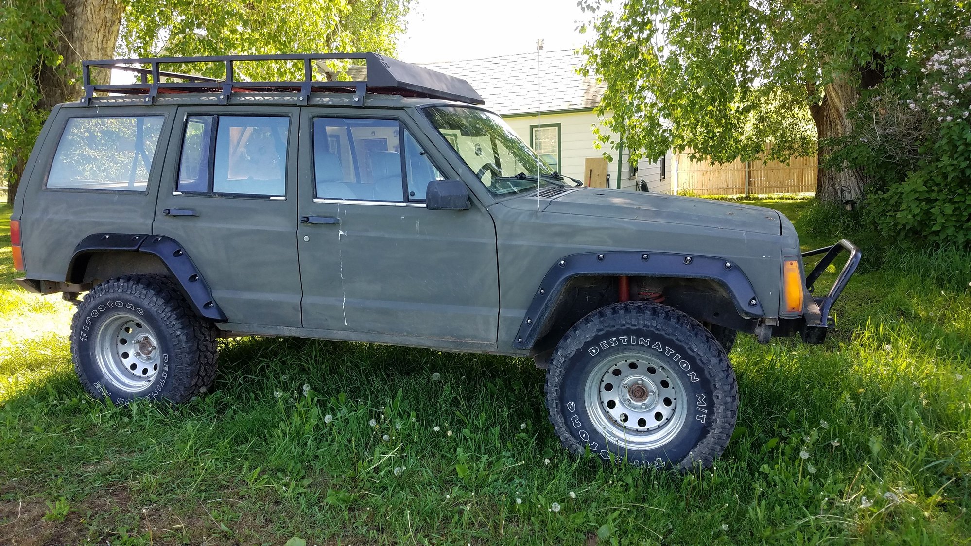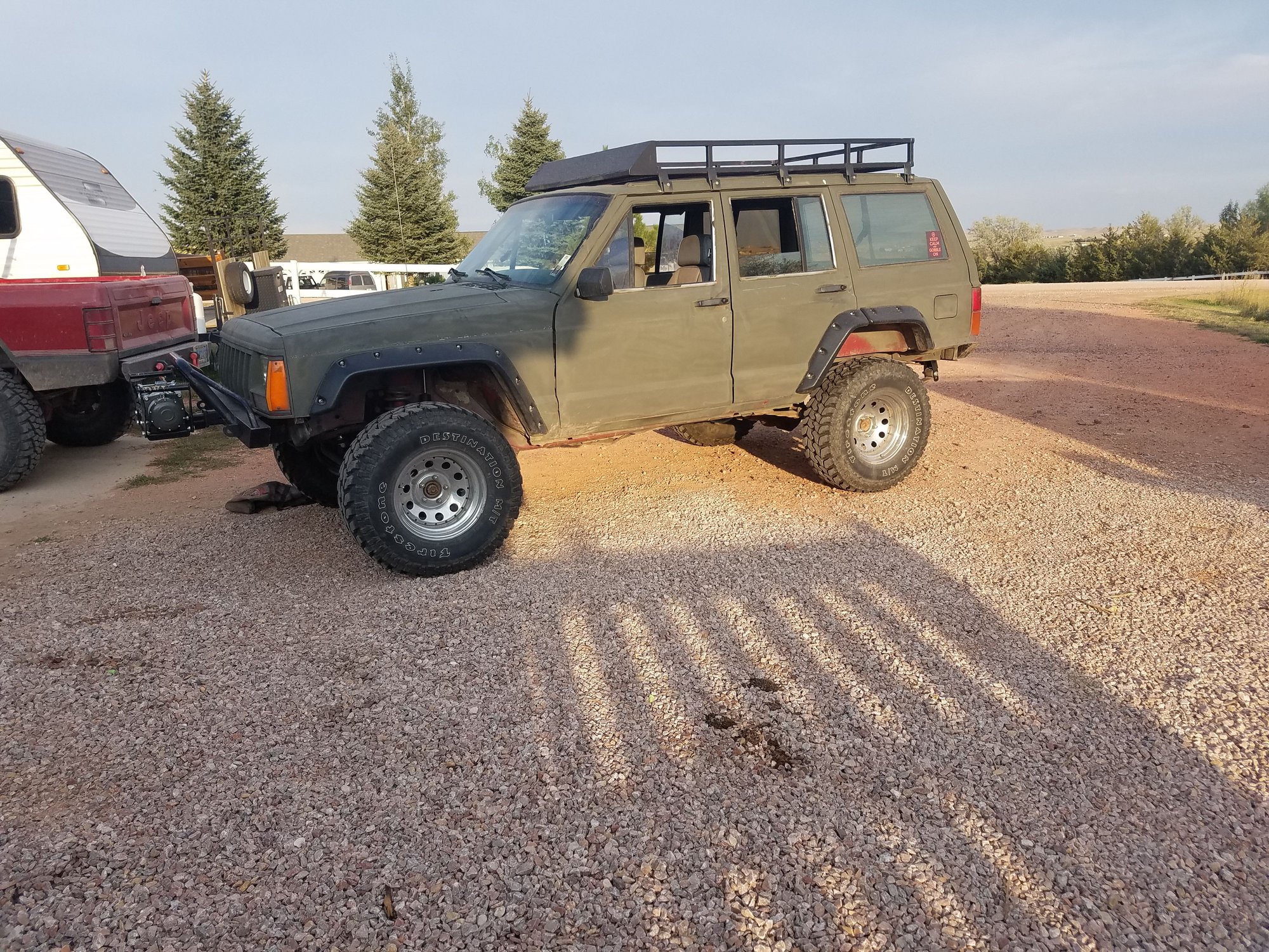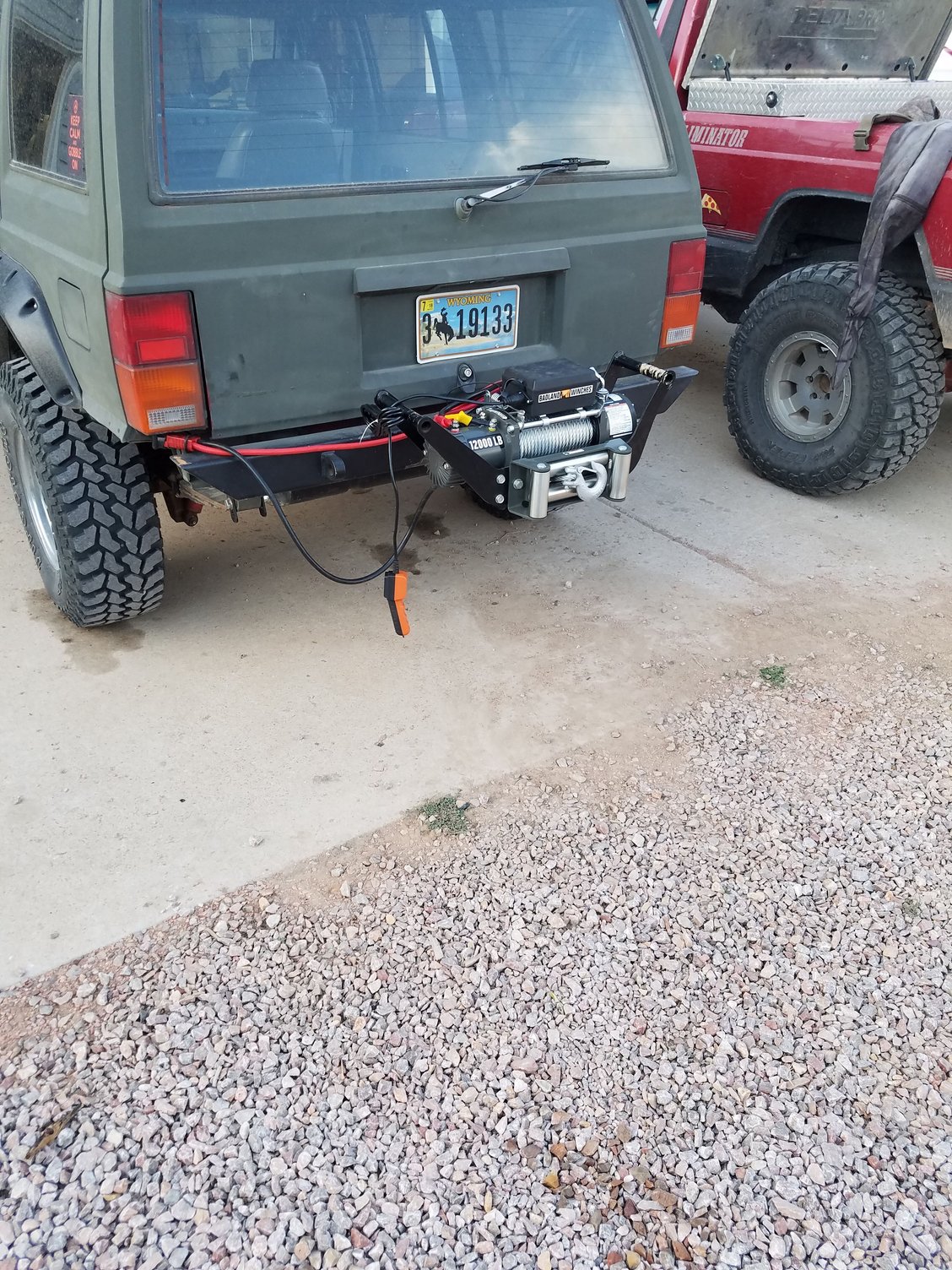 Welp, finally got her on the road. Completed the brake swap from Bendix 9 to a manual system from a 96XJ. i literally stripped the entire brake system including hardlines, booster, axles and everything, and swapped them in to the 90. The hardest part was swapping in the hard line for the Right front. I had to remove all the wiring from the engine bay, plus nearly everything on the passenger side, and snake the hard line in to place. After that, it was pretty straightforward. Had to grind down the mast cylinder push rod to be flat and match the brake light switch. The brakes are a tad spongy, but im going to attribute that to the rubber lines. The brakes worked fine in the donor vehicle before i tore them apart. While i had everything apart, i added rear shackles, and wired up the winch i got for half price. I have some Ironmanfab adjustable short arms coming in the mail, so those will go on next. Also in the process of swapping it to a Open Cooling system. Shes now sitting at a measured 4" lift. New shackles going in 4" lift