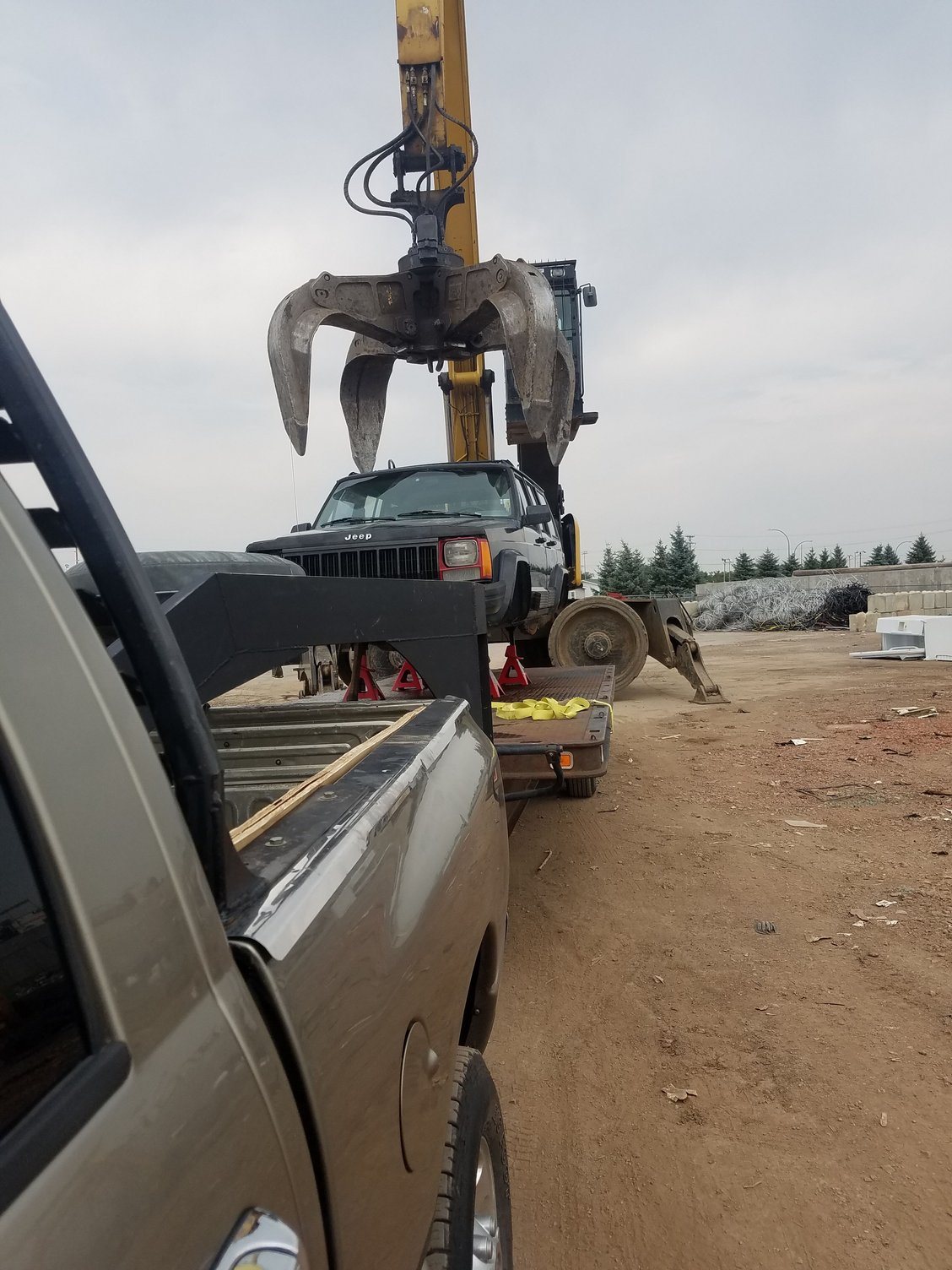 Finally got the 96 donor jeep stripped and off to scrap, 2890lbs. Before anyone flames me.....the interior was destroyed due to cigarette smoke, the airbags had been deployed, and the head was cracked(thus the overheating). I snagged just about everything I could think of that I would need for the 1990. Brake system, including lines, open cooling system, both axles, the center console for my MJ, and misceleous fittings.